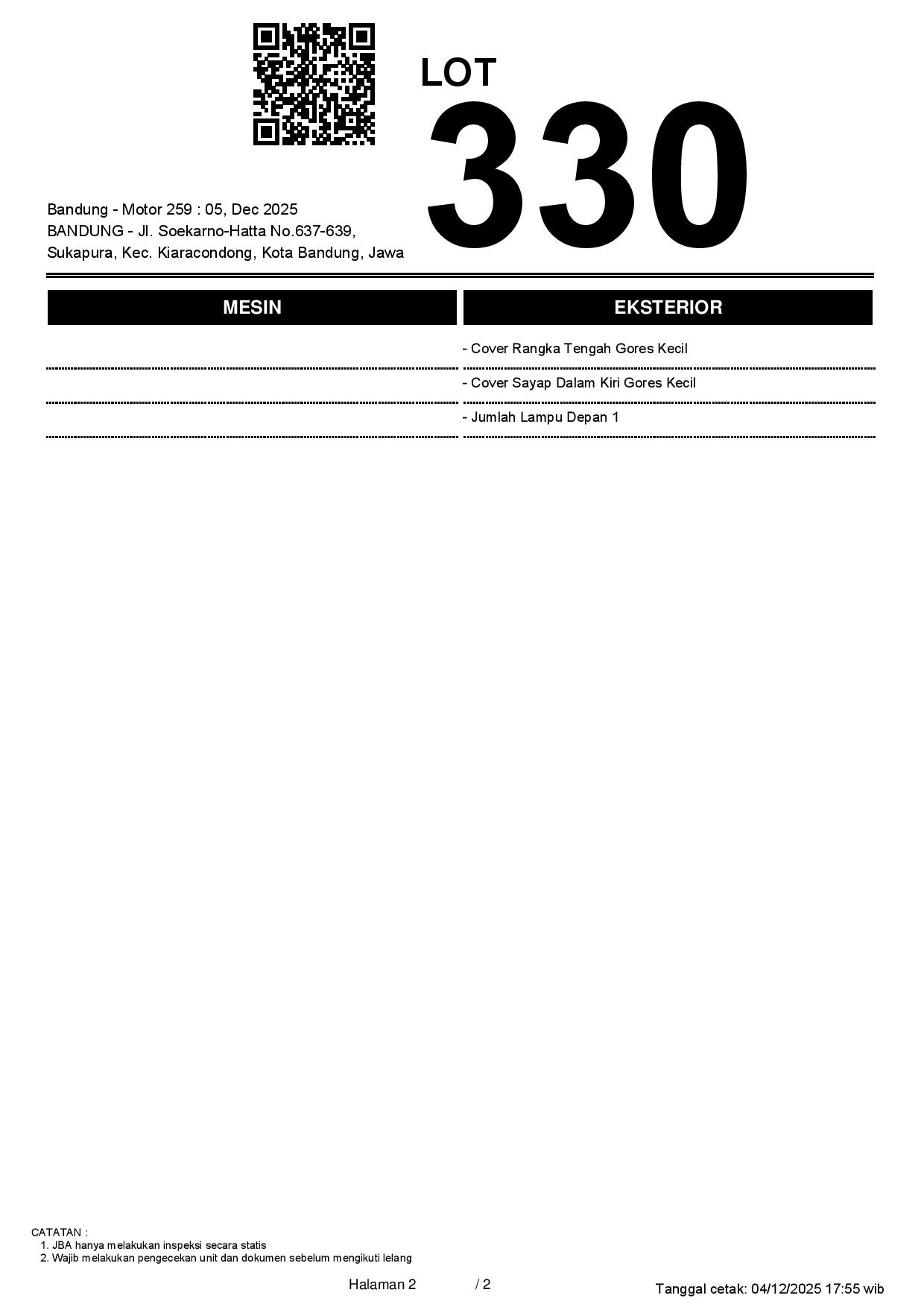 Tanggal Lelang: 05/12/2025 13.5:00 | WIB
