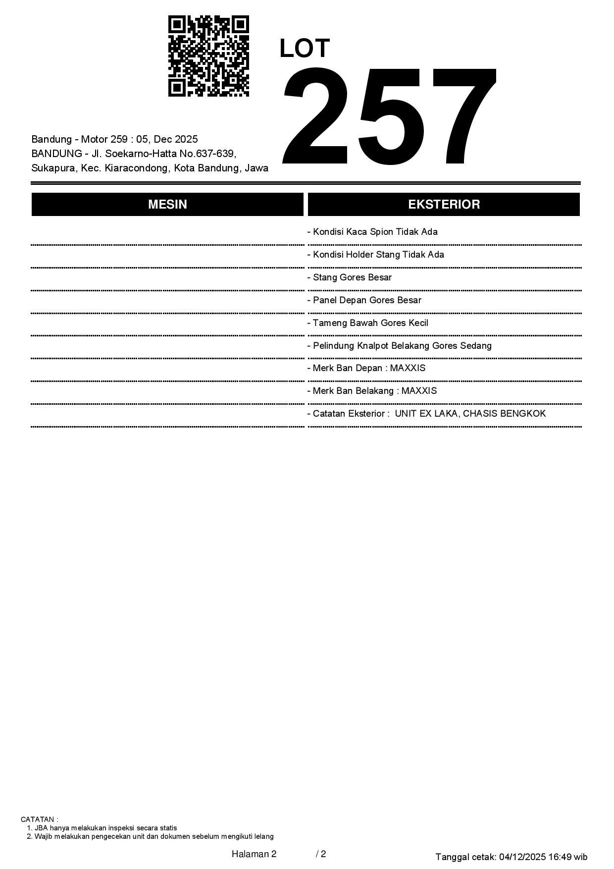 Tanggal Lelang: 05/12/2025 13.5:00 | WIB
