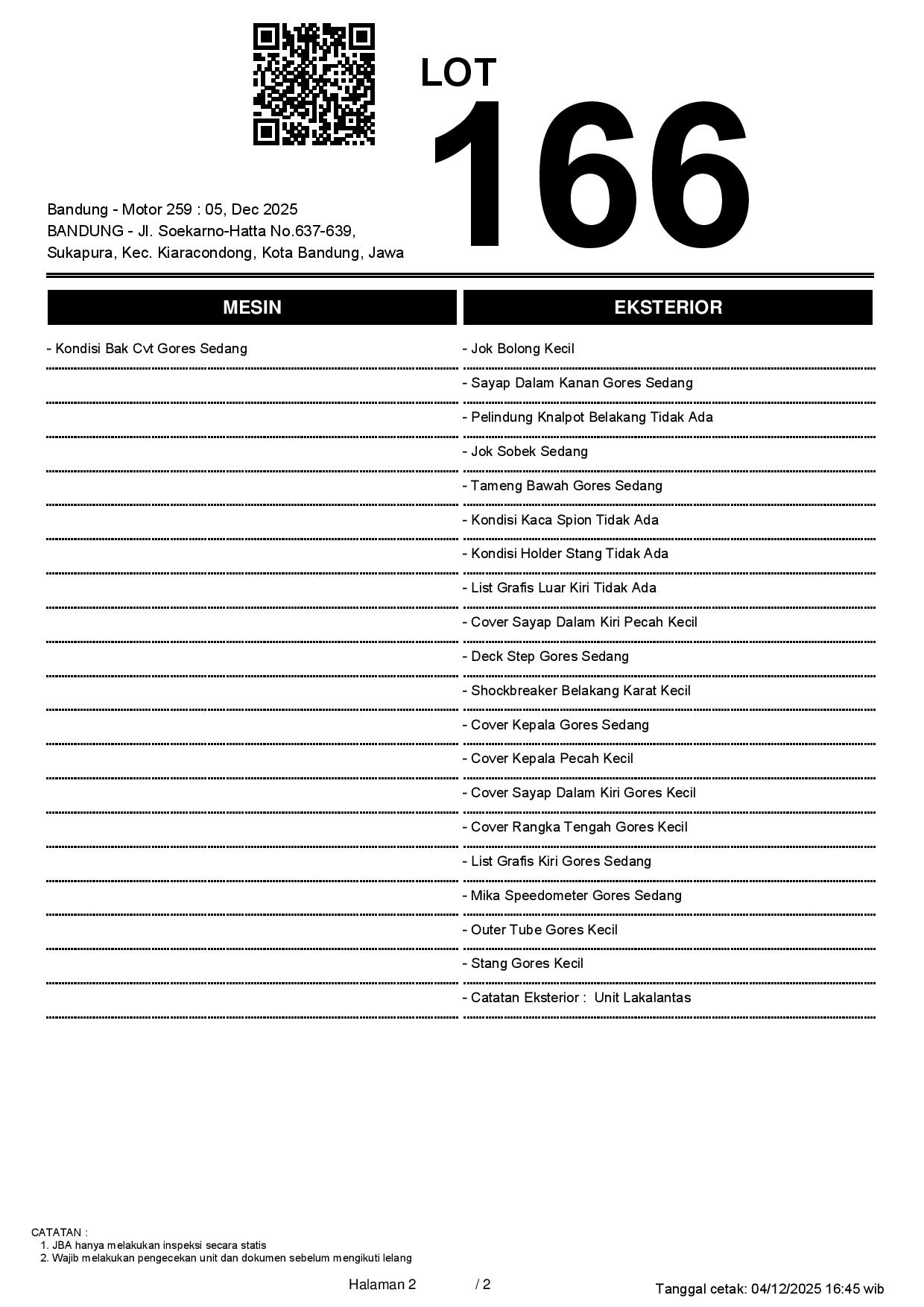 2. Peserta lelang wajib cek unit & dokumen