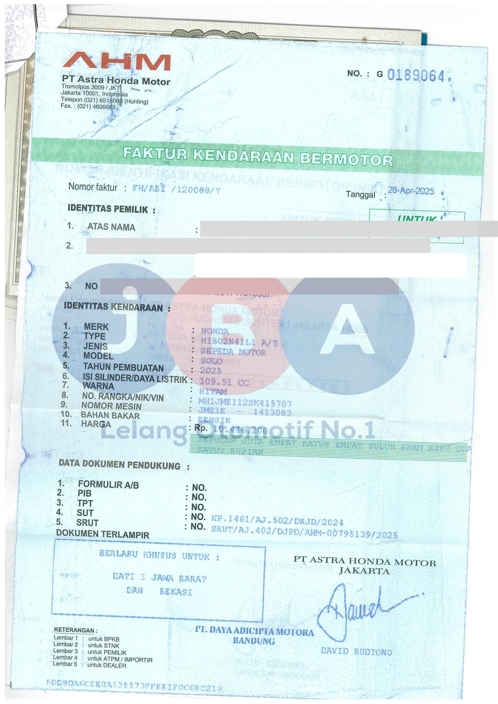 Nomor Rangka