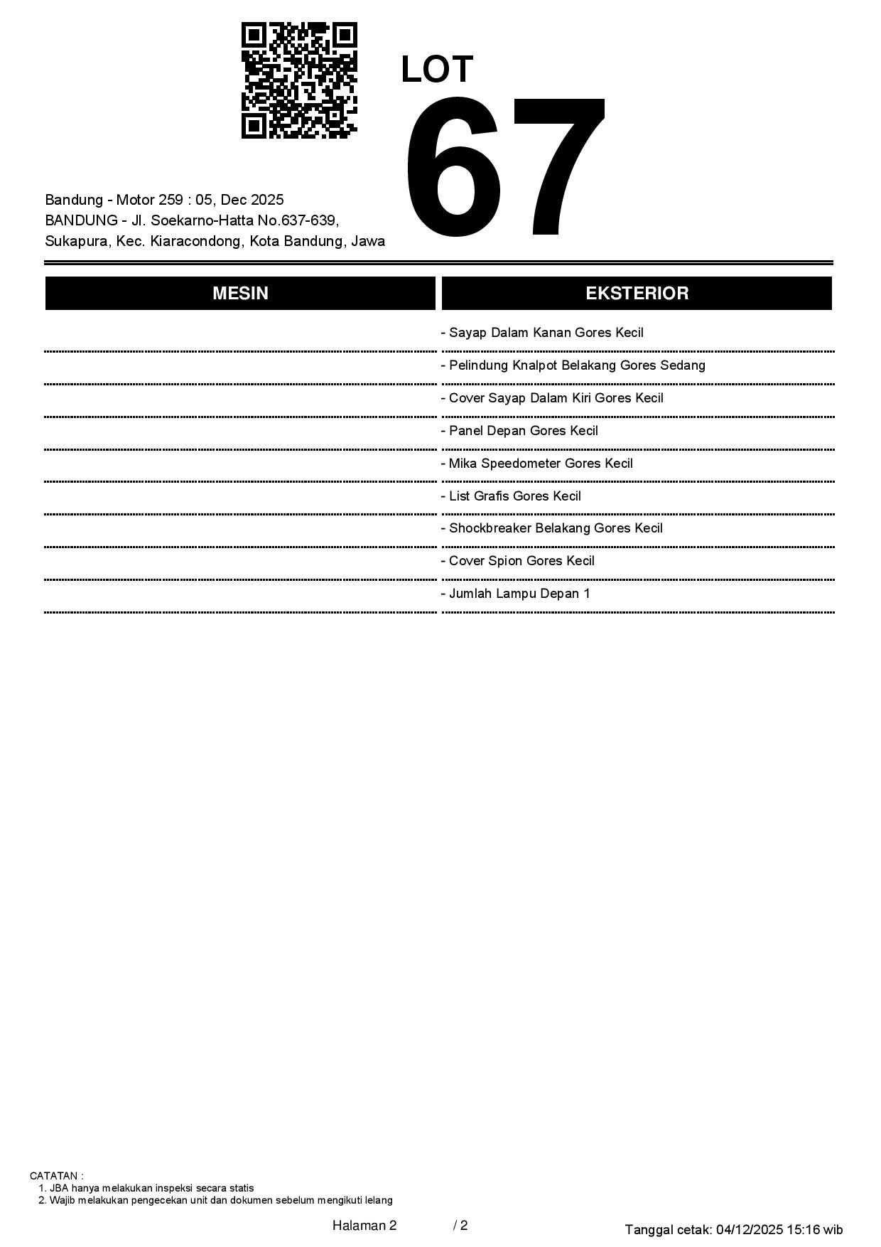 2. Peserta lelang wajib cek unit & dokumen