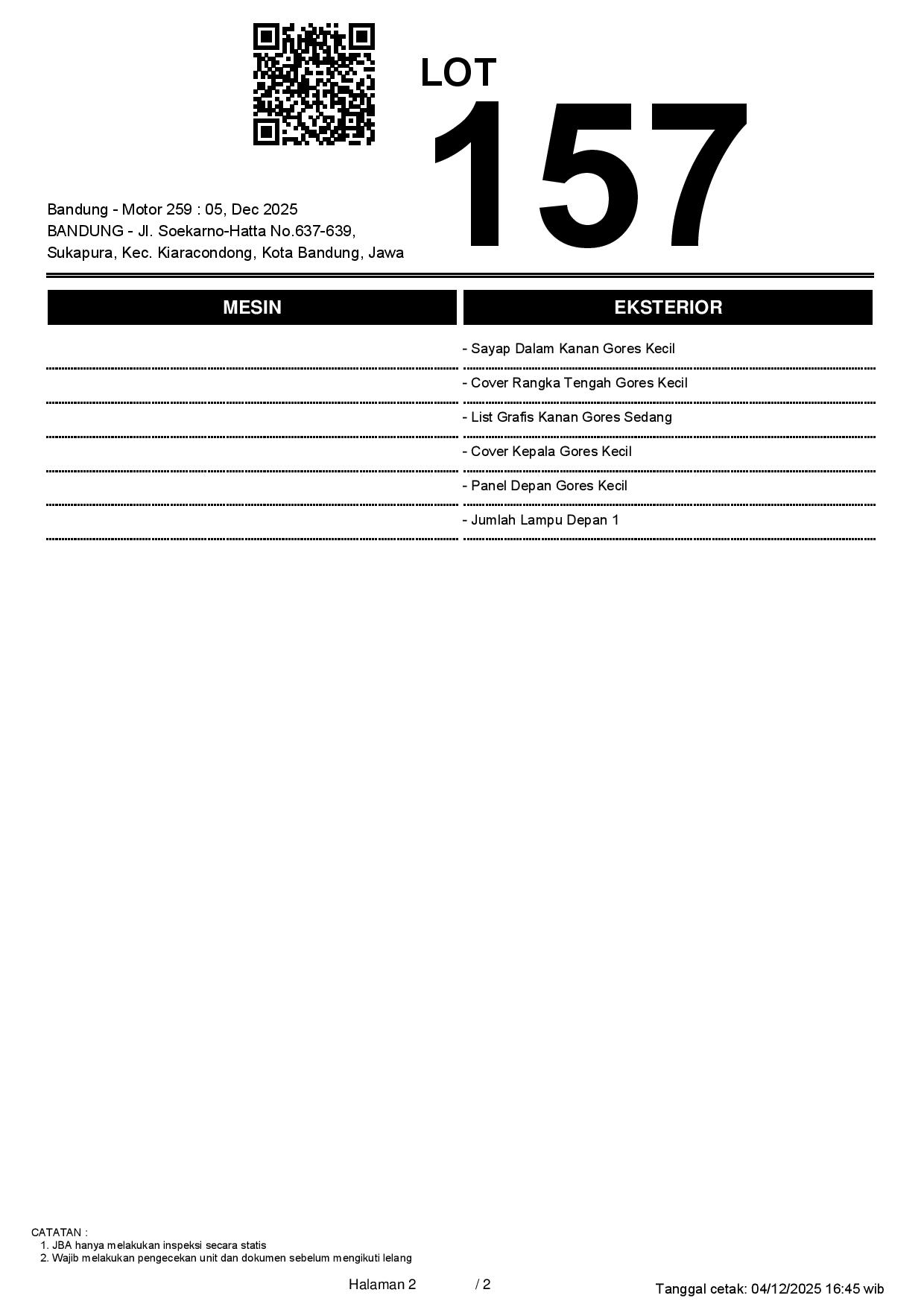 Tanggal Lelang: 05/12/2025 13.5:00 | WIB