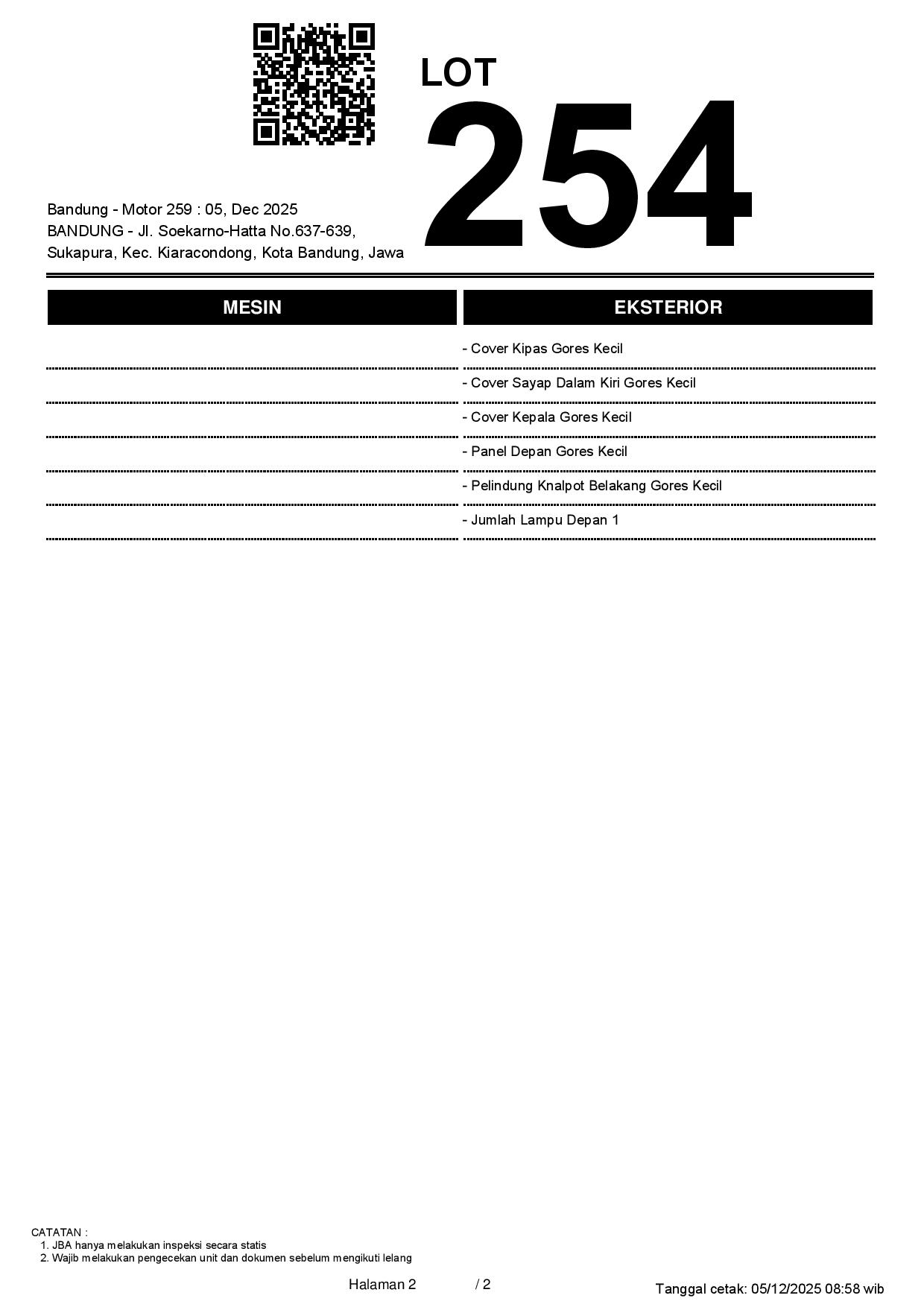 2. Peserta lelang wajib cek unit & dokumen