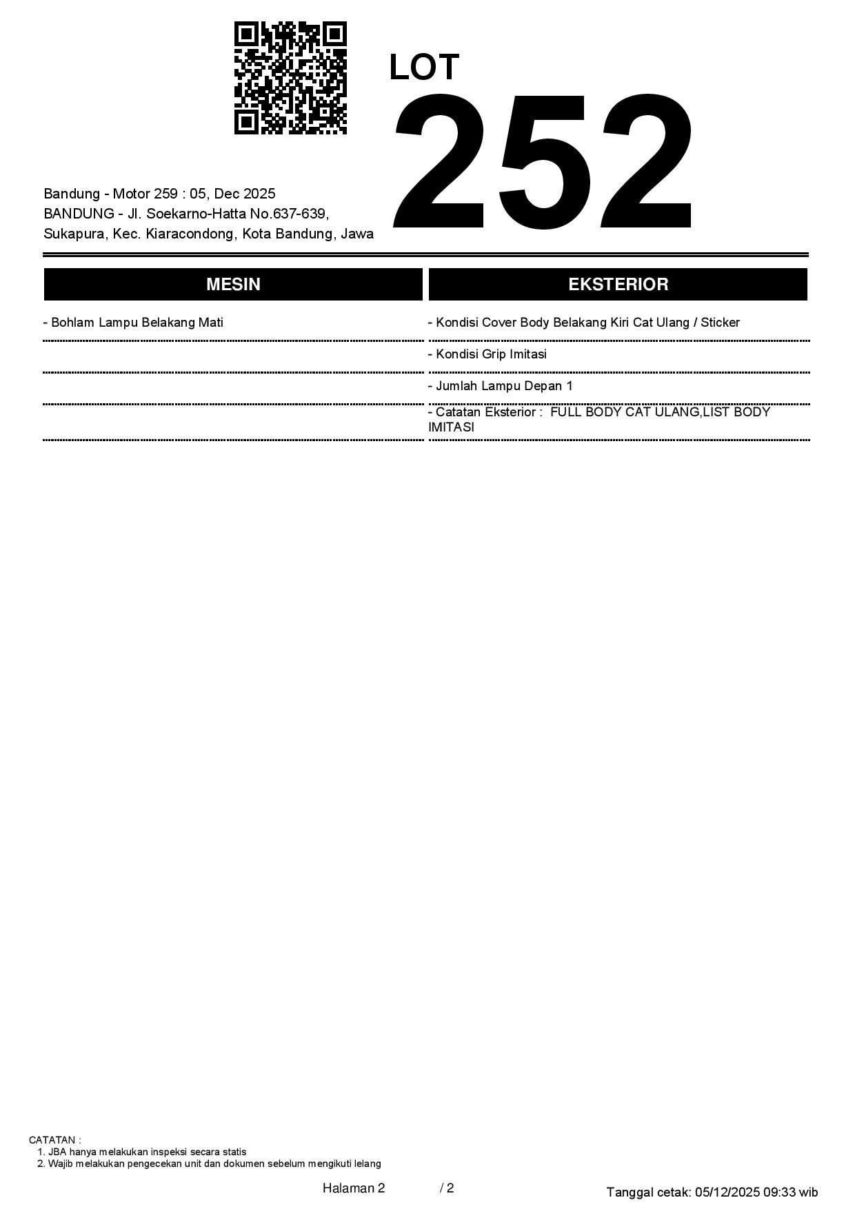 2. Peserta lelang wajib cek unit & dokumen