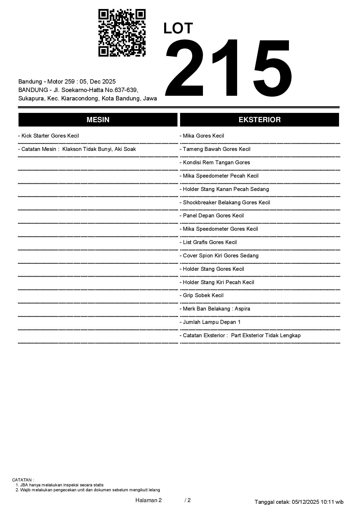 2. Peserta lelang wajib cek unit & dokumen