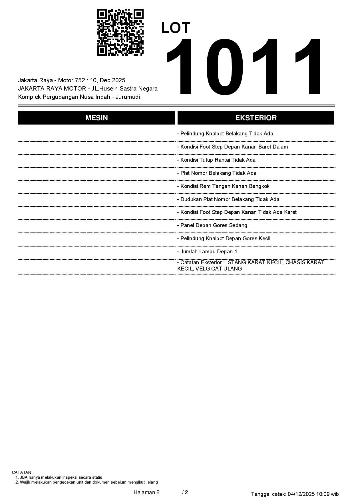 2. Peserta lelang wajib cek unit & dokumen