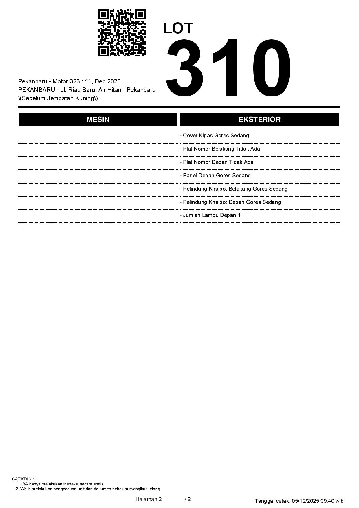 2. Peserta lelang wajib cek unit & dokumen