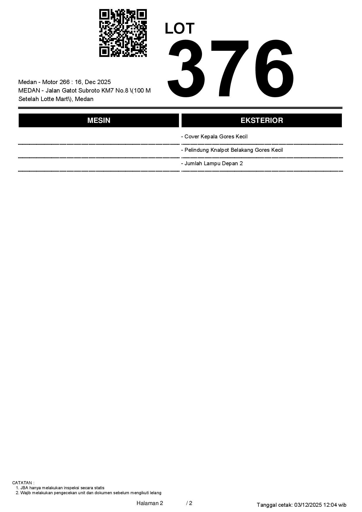 2. Peserta lelang wajib cek unit & dokumen