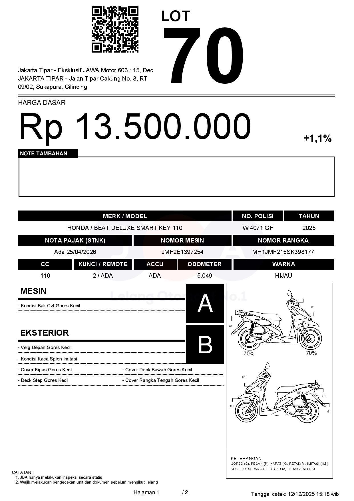 Tanggal Lelang: 15/12/2025 13:00 | WIB