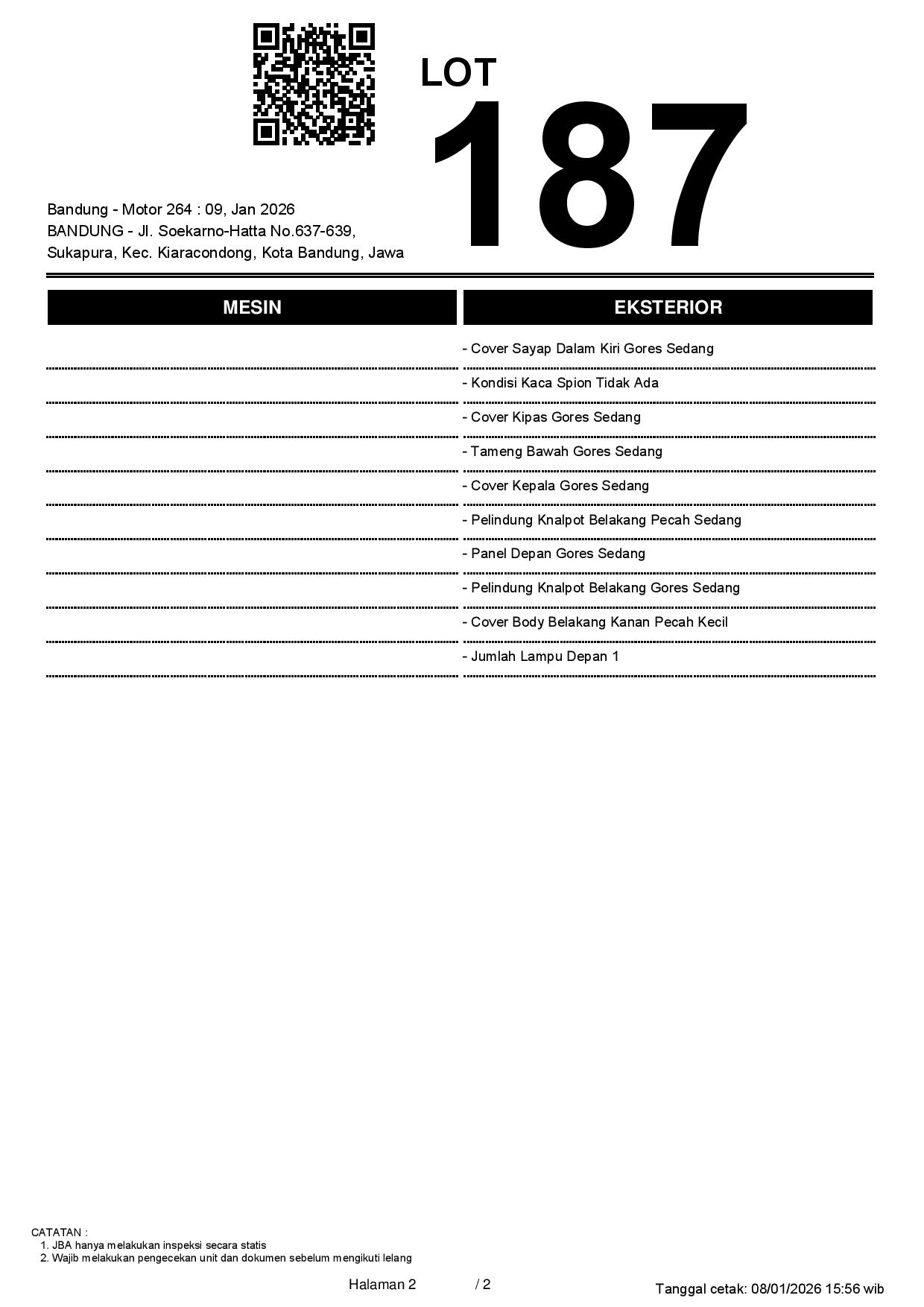 1. Peserta lelang wajib cek unit & dokumen