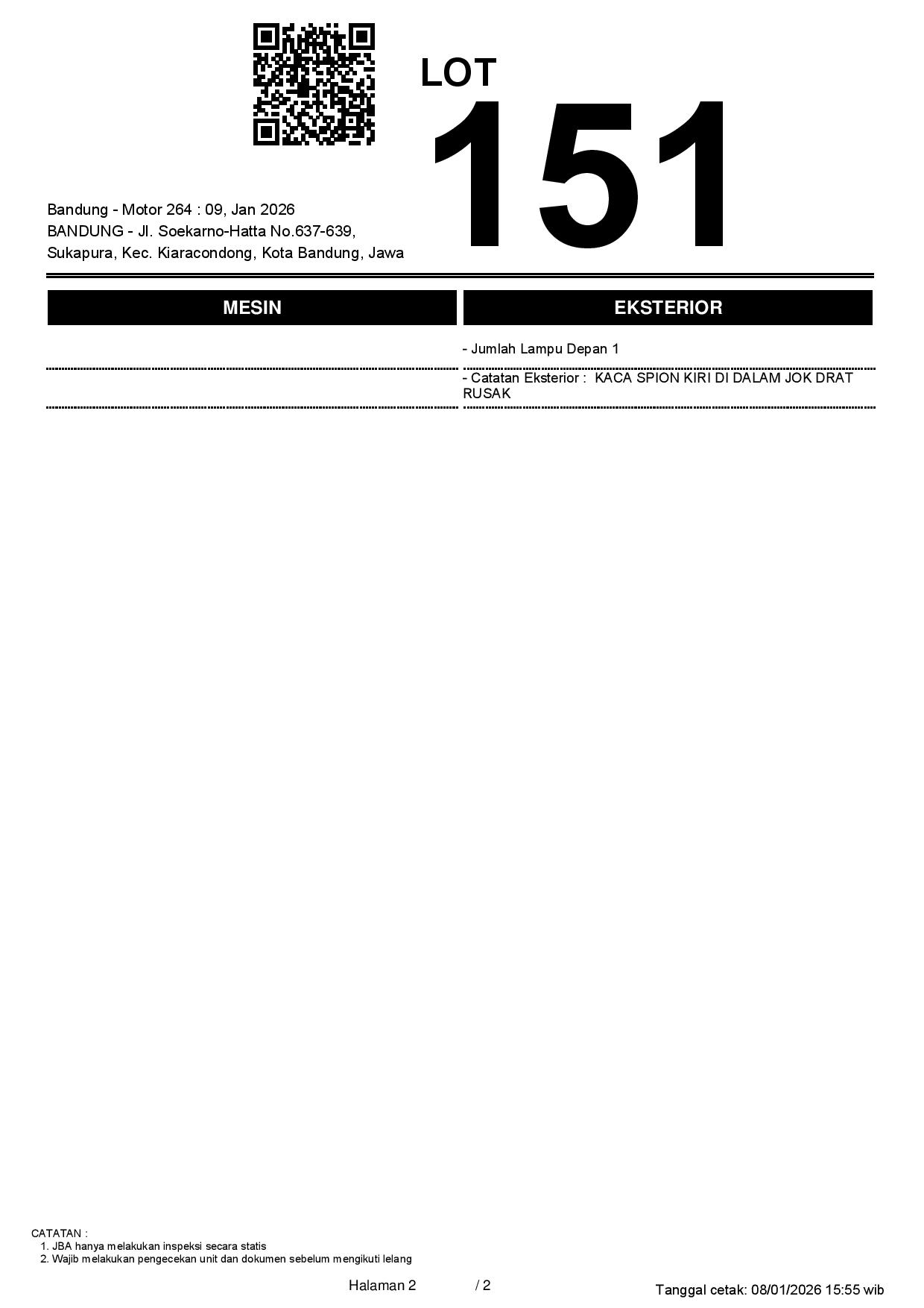 2. Peserta lelang wajib cek unit & dokumen