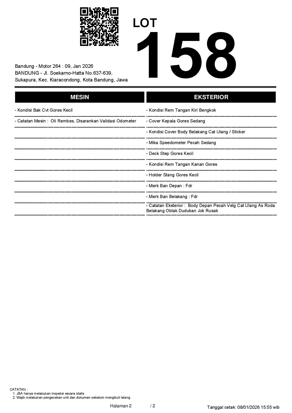 2. Peserta lelang wajib cek unit & dokumen