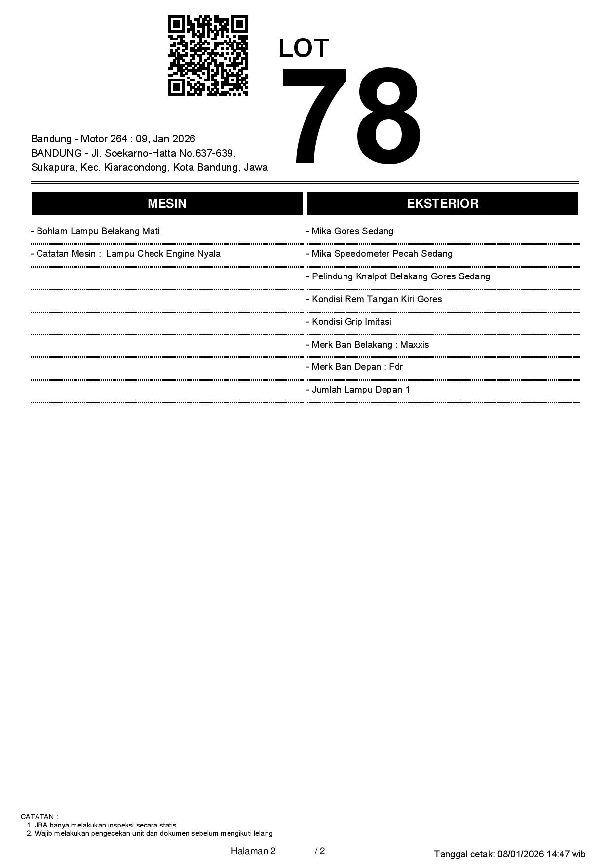 2. Peserta lelang wajib cek unit & dokumen
