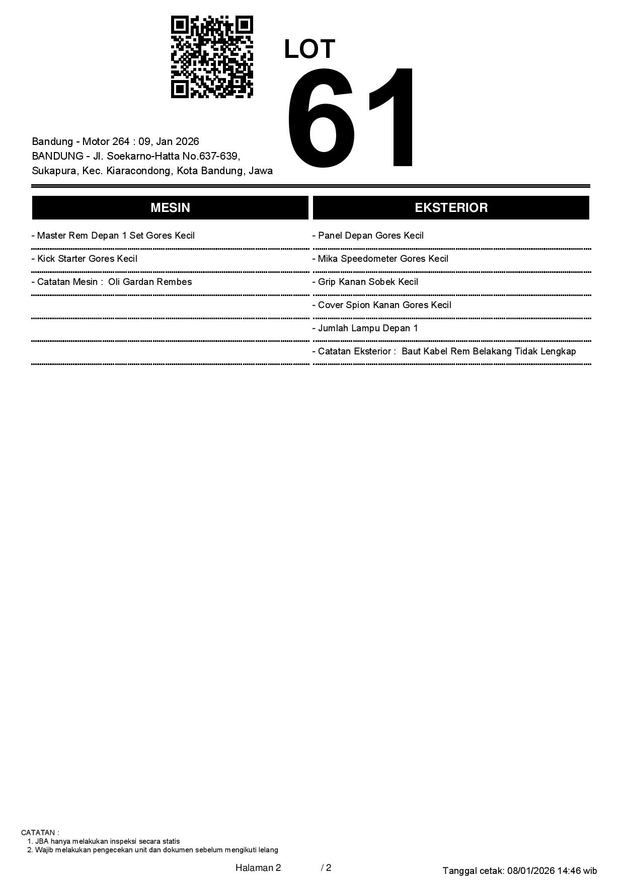 2. Peserta lelang wajib cek unit & dokumen