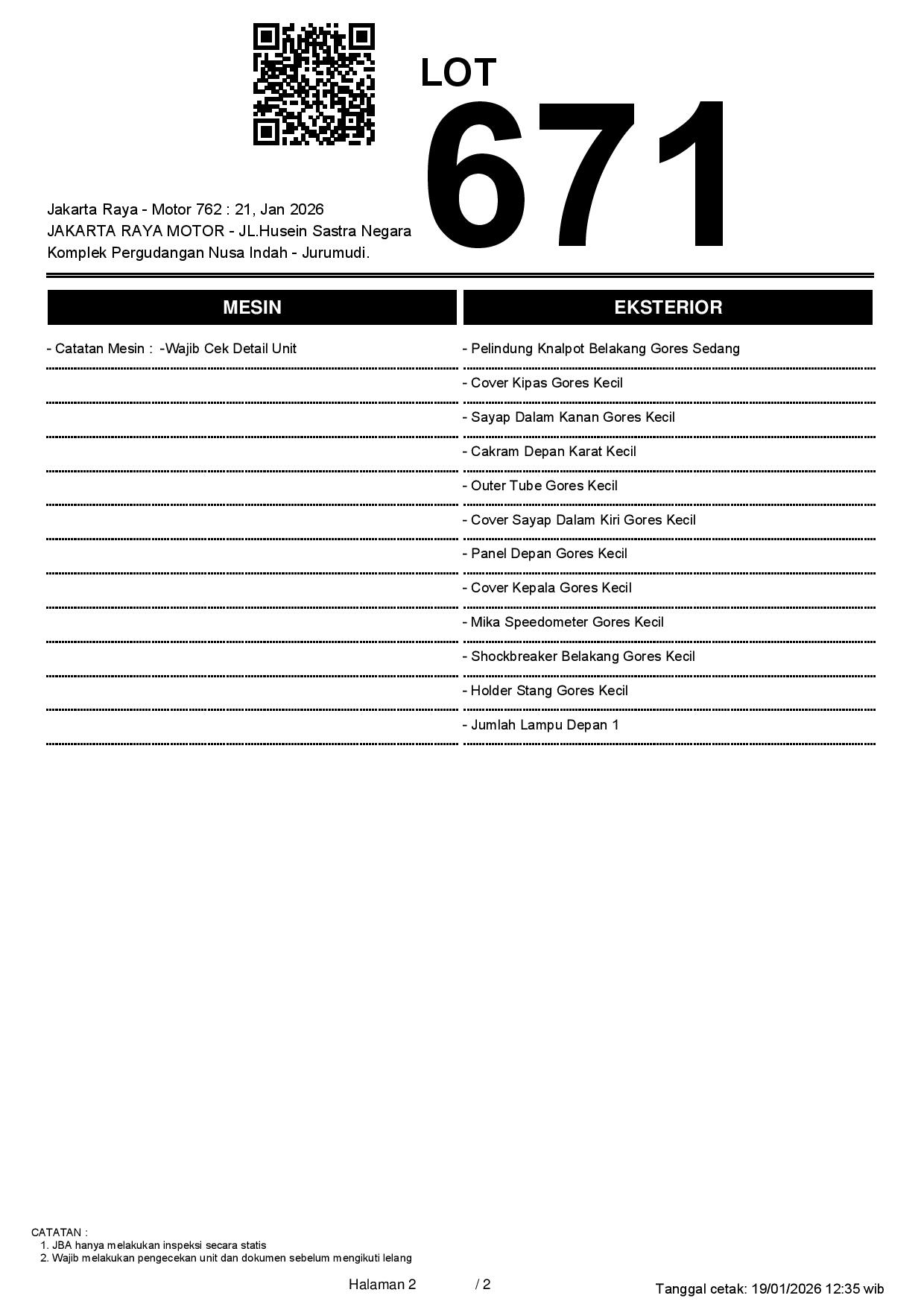 2. Peserta lelang wajib cek unit & dokumen