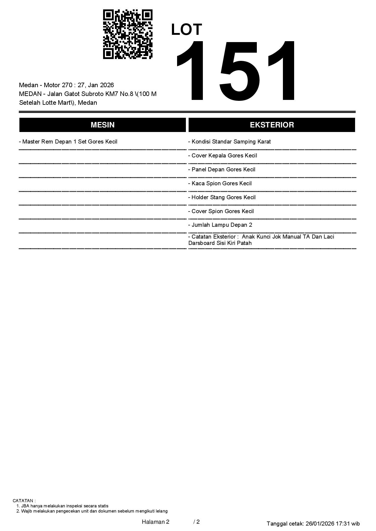 Tanggal Lelang: 27/01/2026 13:00 | WIB