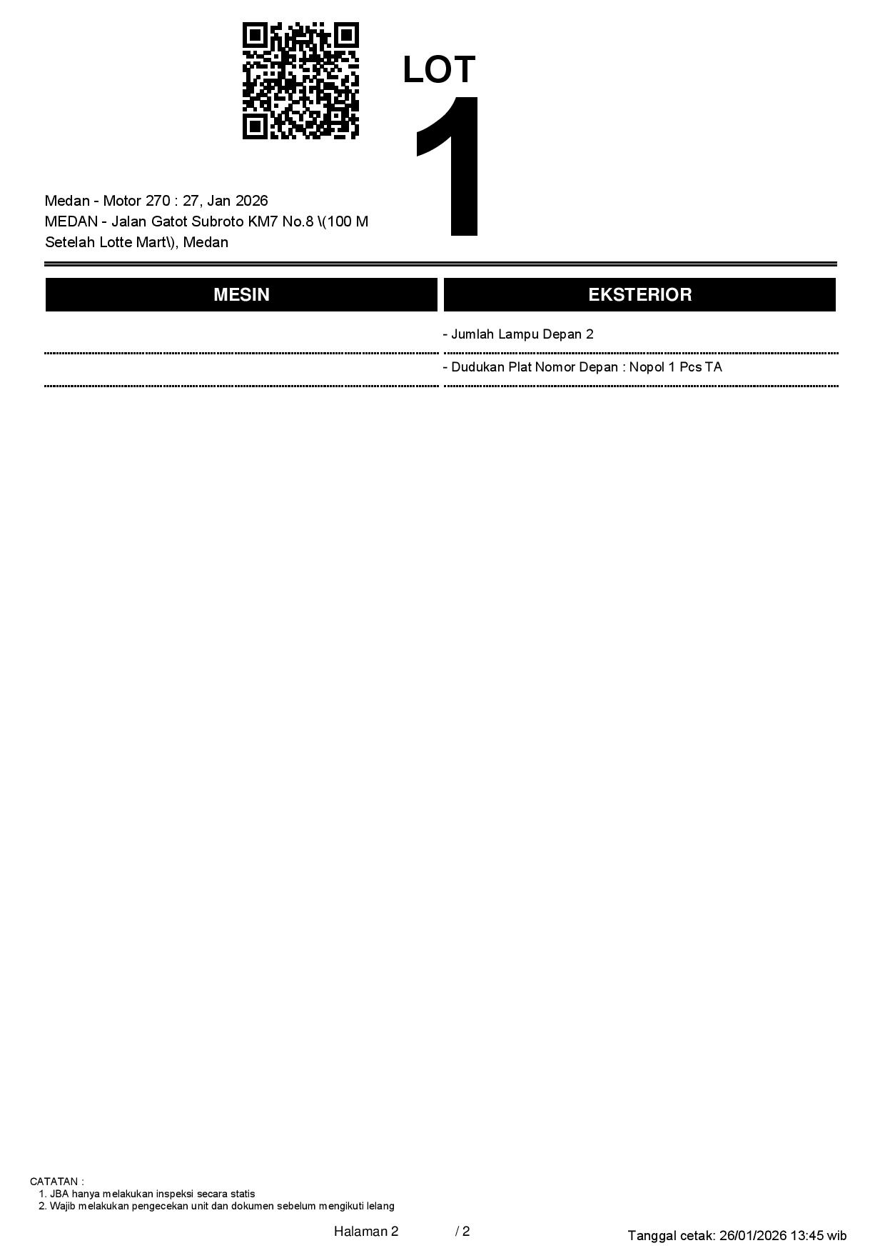 Tanggal Lelang: 27/01/2026 13:00 | WIB