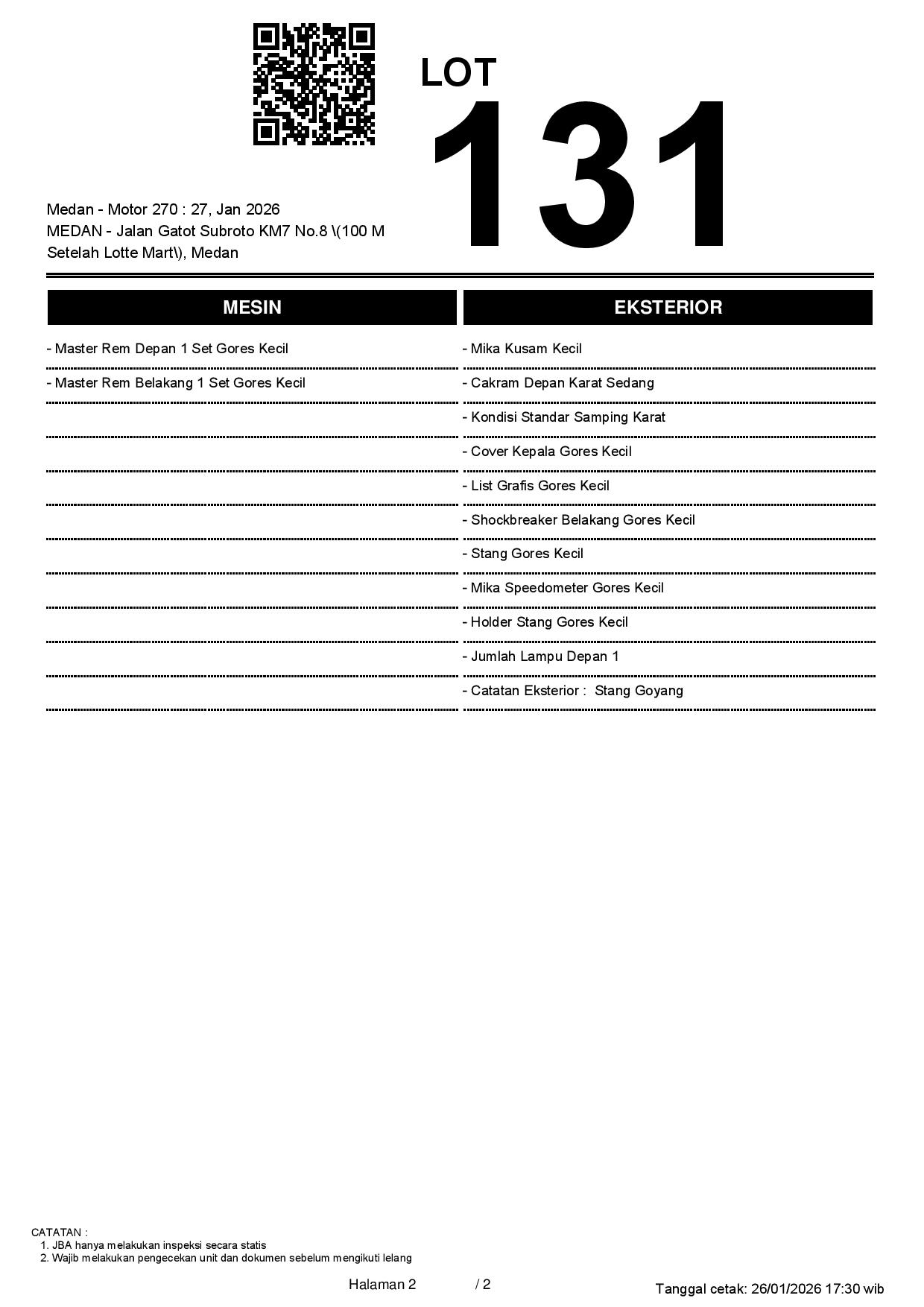 Tanggal Lelang: 27/01/2026 13:00 | WIB