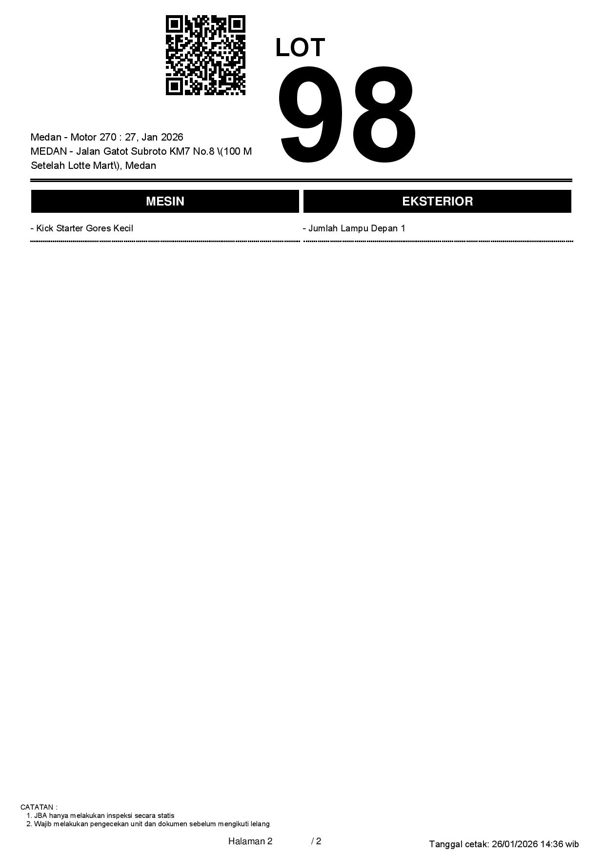 Tanggal Lelang: 27/01/2026 13:00 | WIB