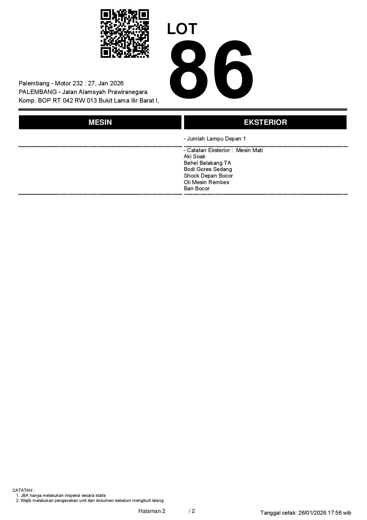 Tanggal Lelang: 27/01/2026 11:00 | WIB