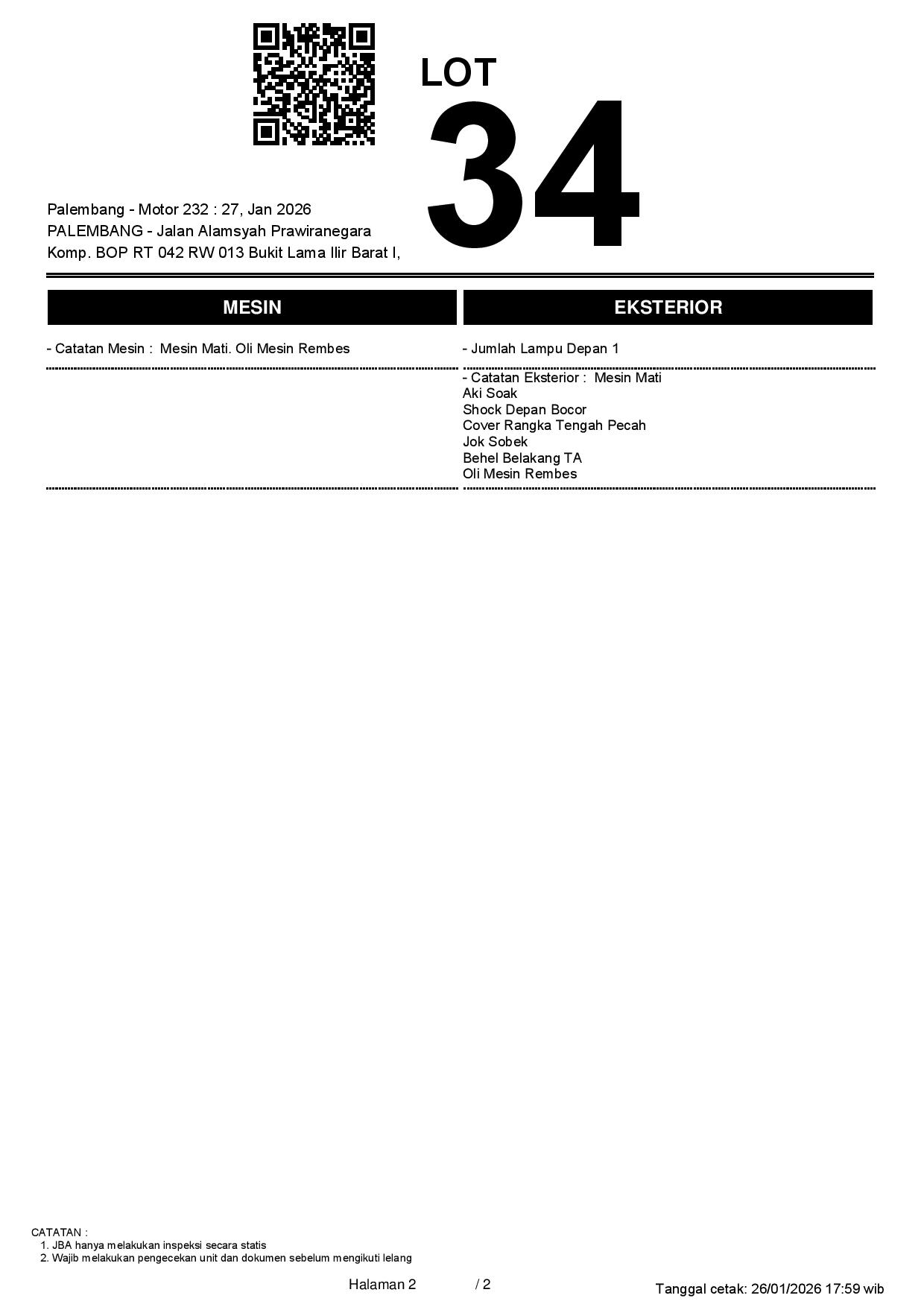 1. Peserta lelang wajib cek unit & dokumen