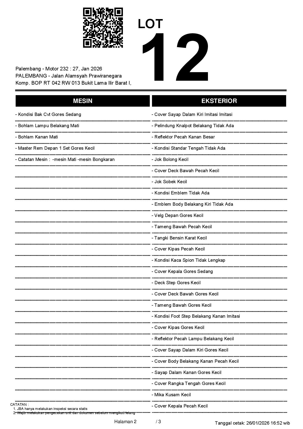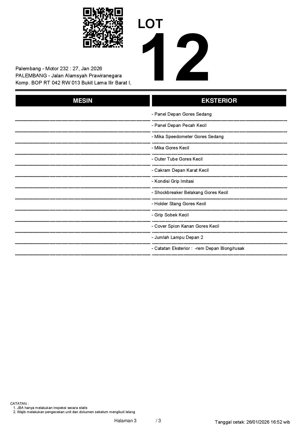 Tanggal Lelang: 27/01/2026 11:00 | WIB