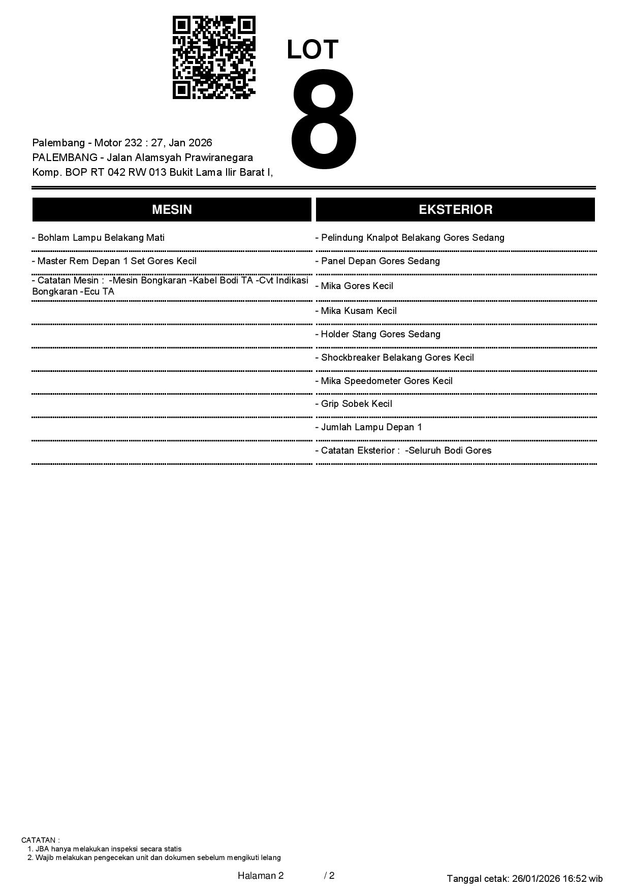 2. Peserta lelang wajib cek unit & dokumen