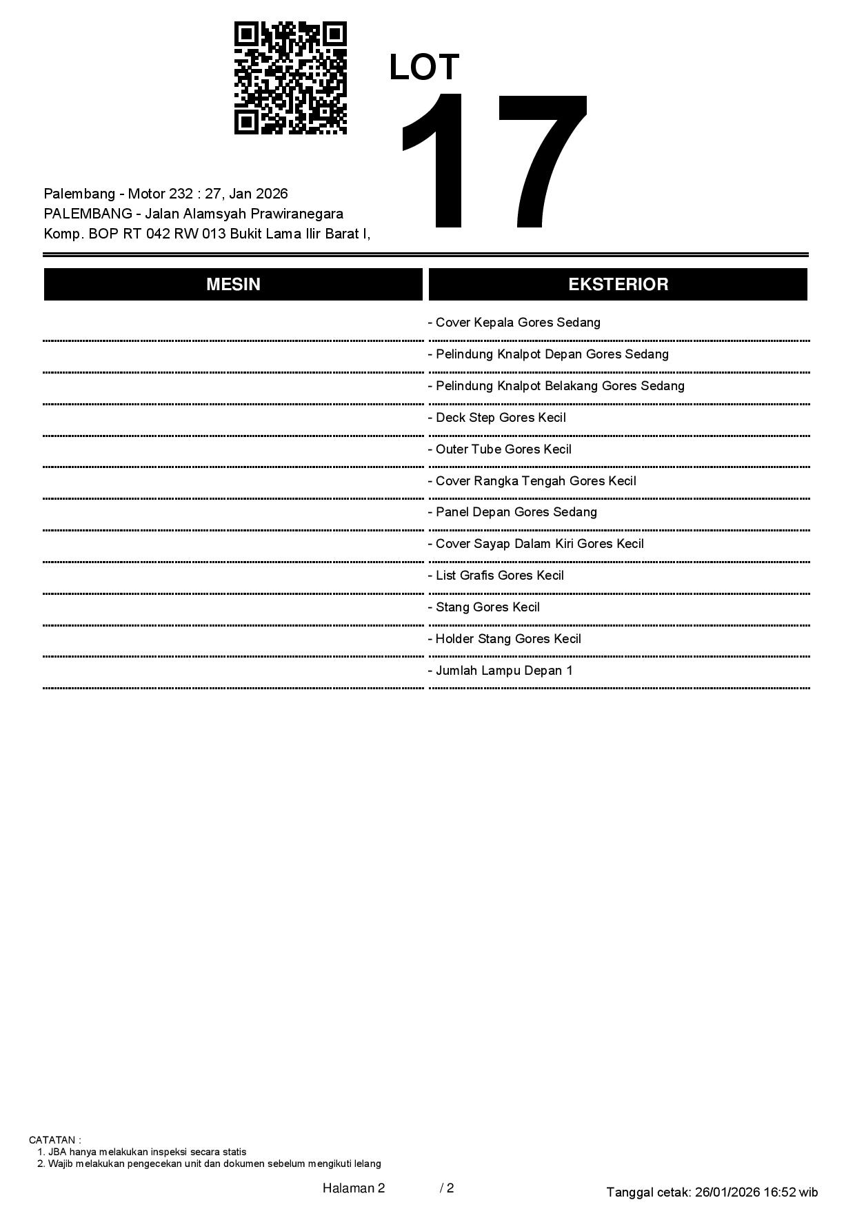 Tanggal Lelang: 27/01/2026 11:00 | WIB