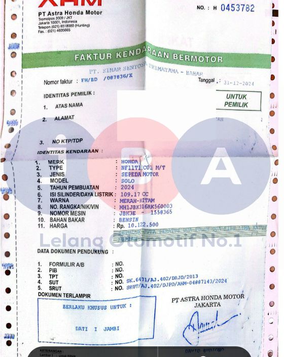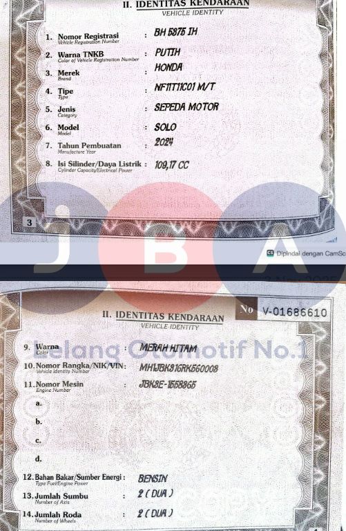 NOPOL FISIK TA // WARNA UNIT DI DOK MERAH HITAM // NOKA&NOSIN DI NOTICE TDK JEAS 1 DIGIT //