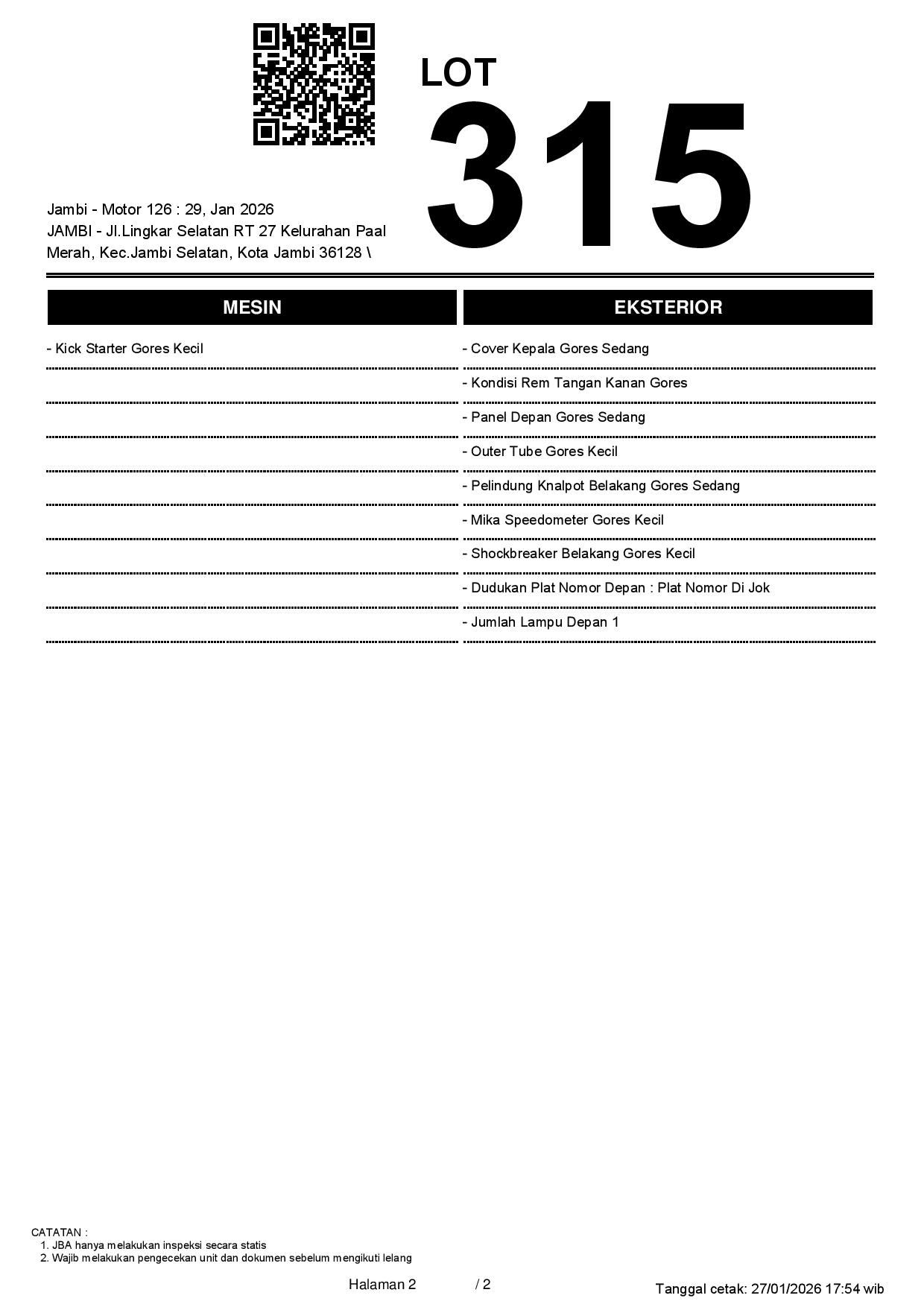 Tanggal Lelang: 27/01/2026 11:00 | WIB