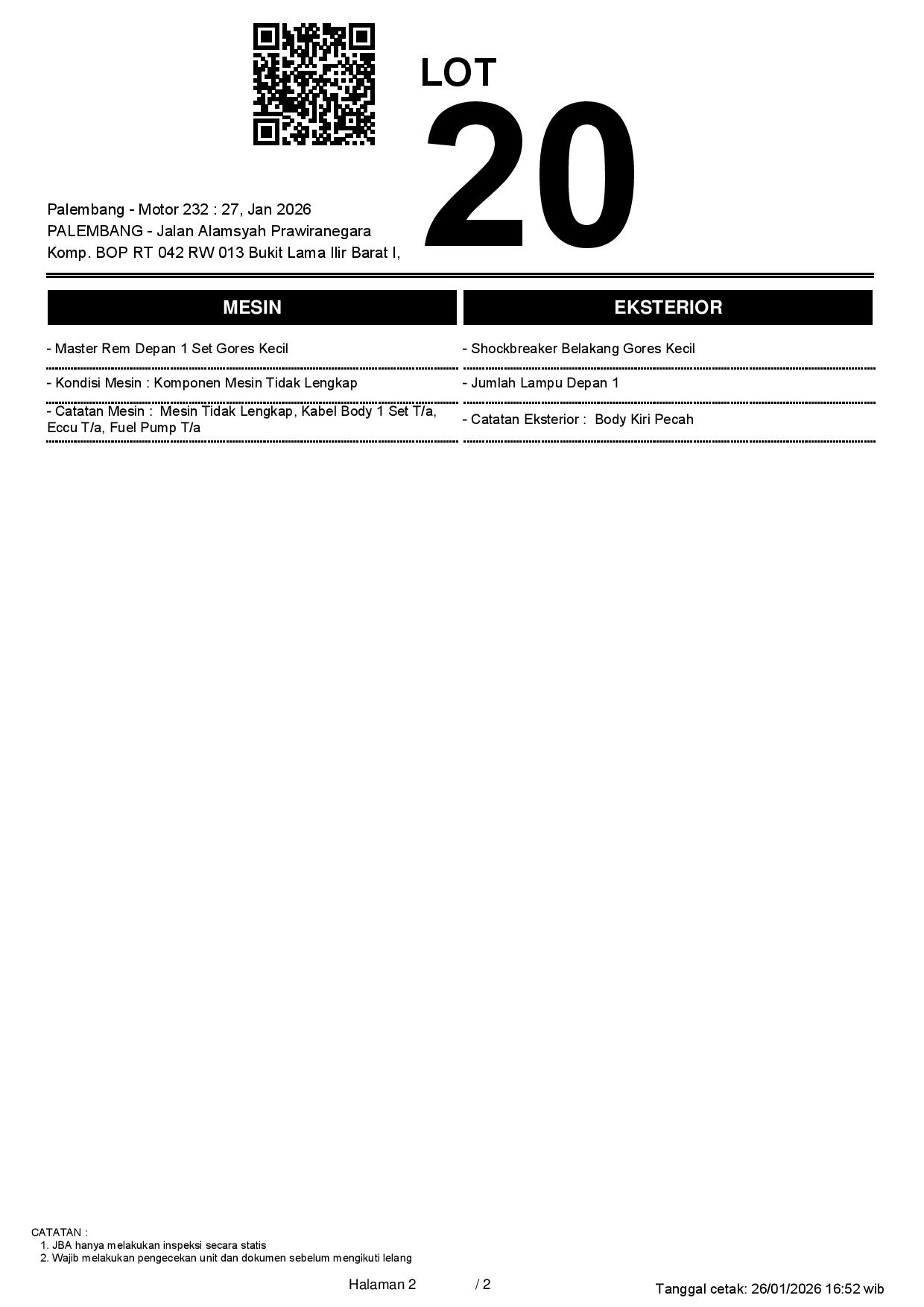 Tanggal Lelang: 27/01/2026 11:00 | WIB