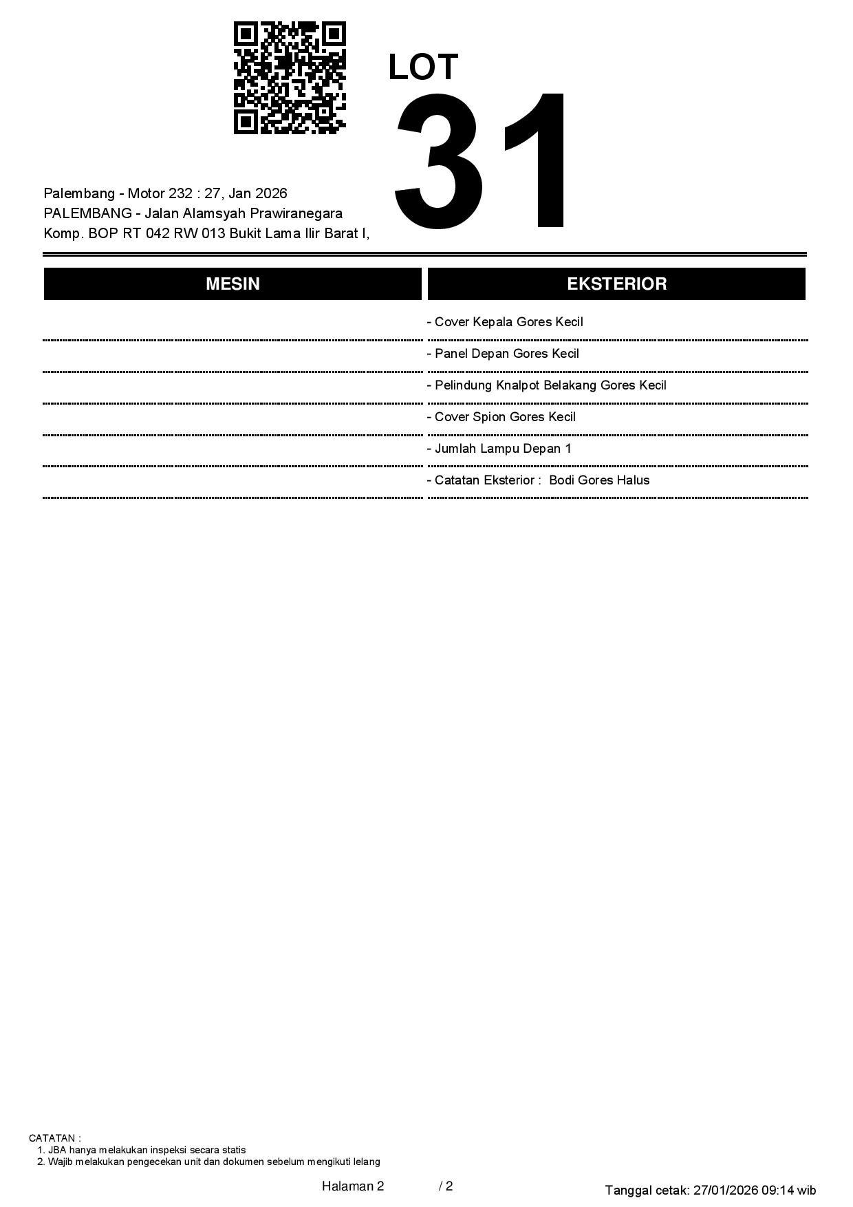 Tanggal Lelang: 27/01/2026 11:00 | WIB
