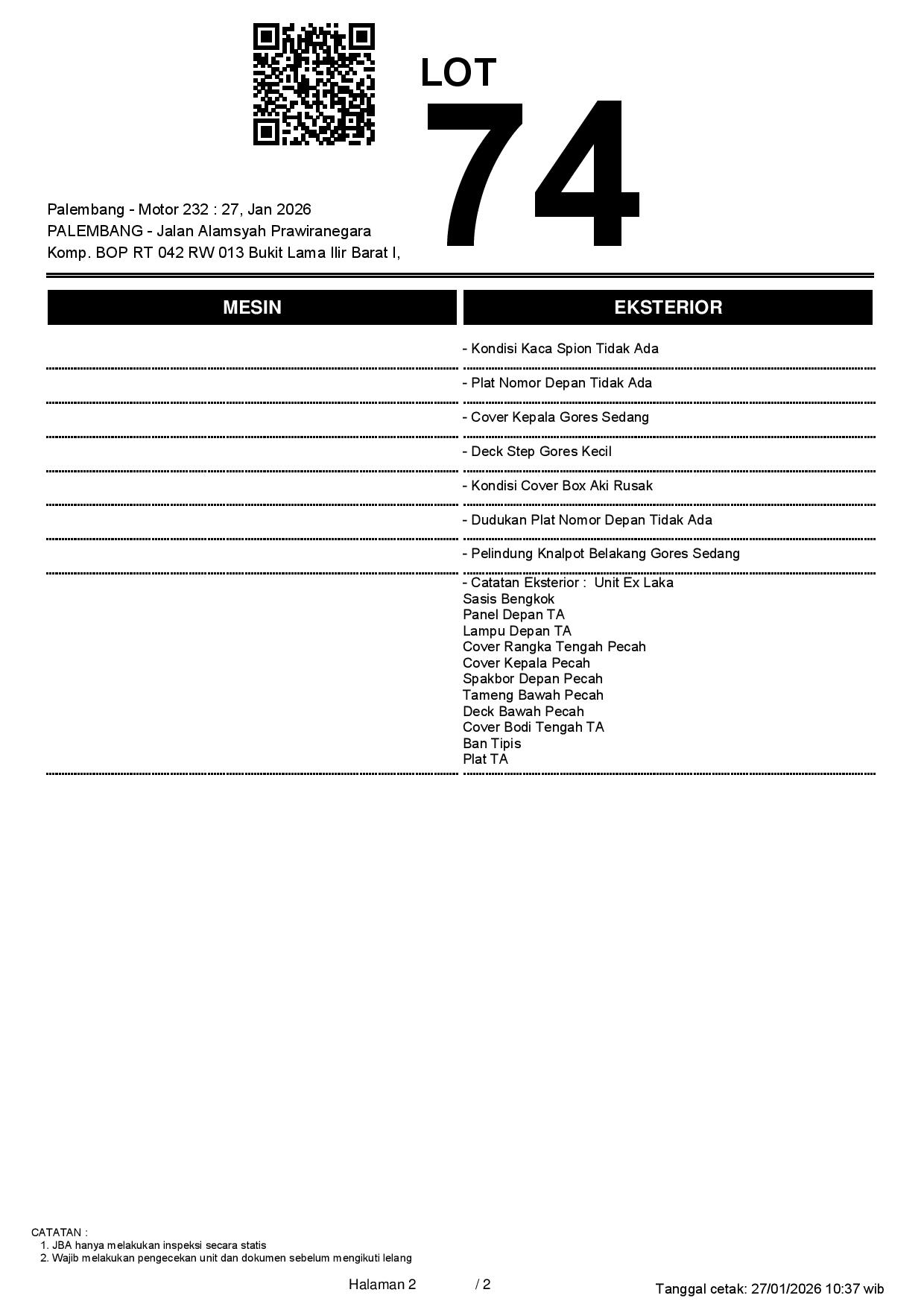 2. Peserta lelang wajib cek unit & dokumen