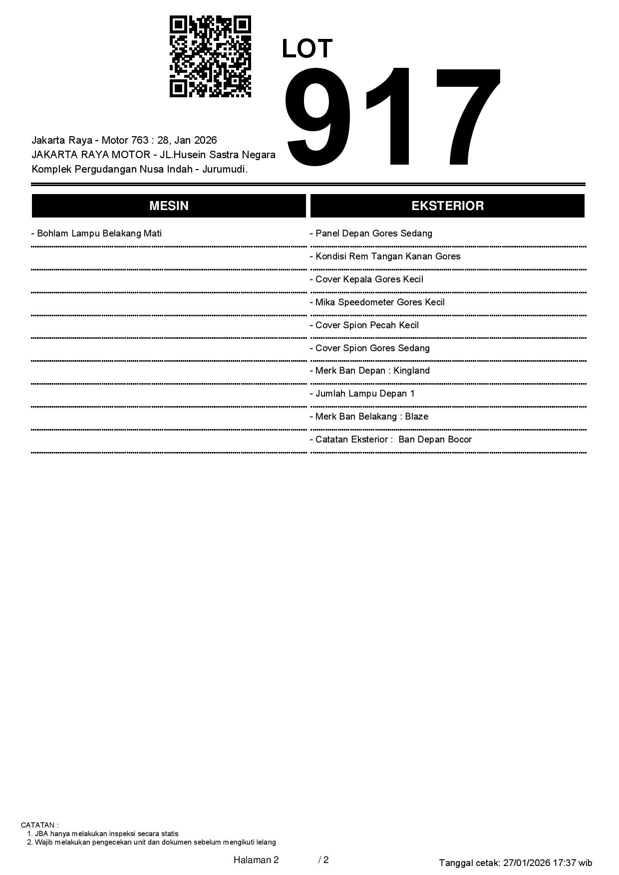 1. Peserta lelang wajib cek unit & dokumen