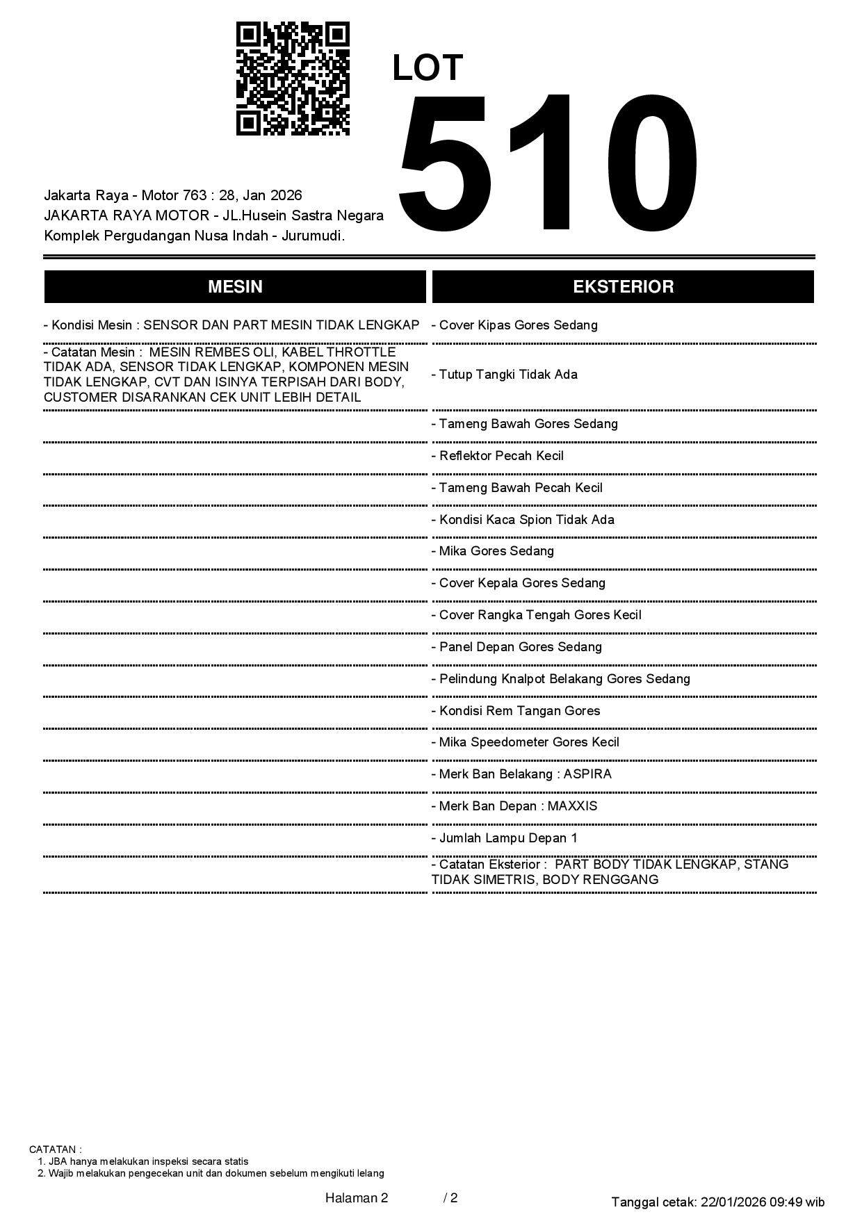 1. Peserta lelang wajib cek unit & dokumen