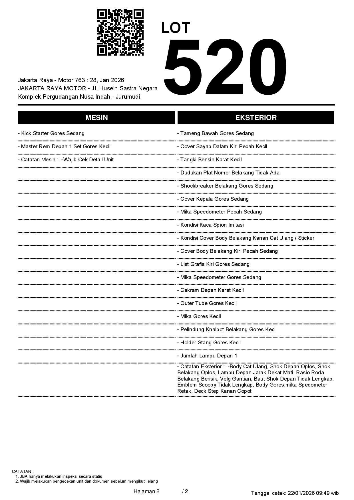 2. Peserta lelang wajib cek unit & dokumen