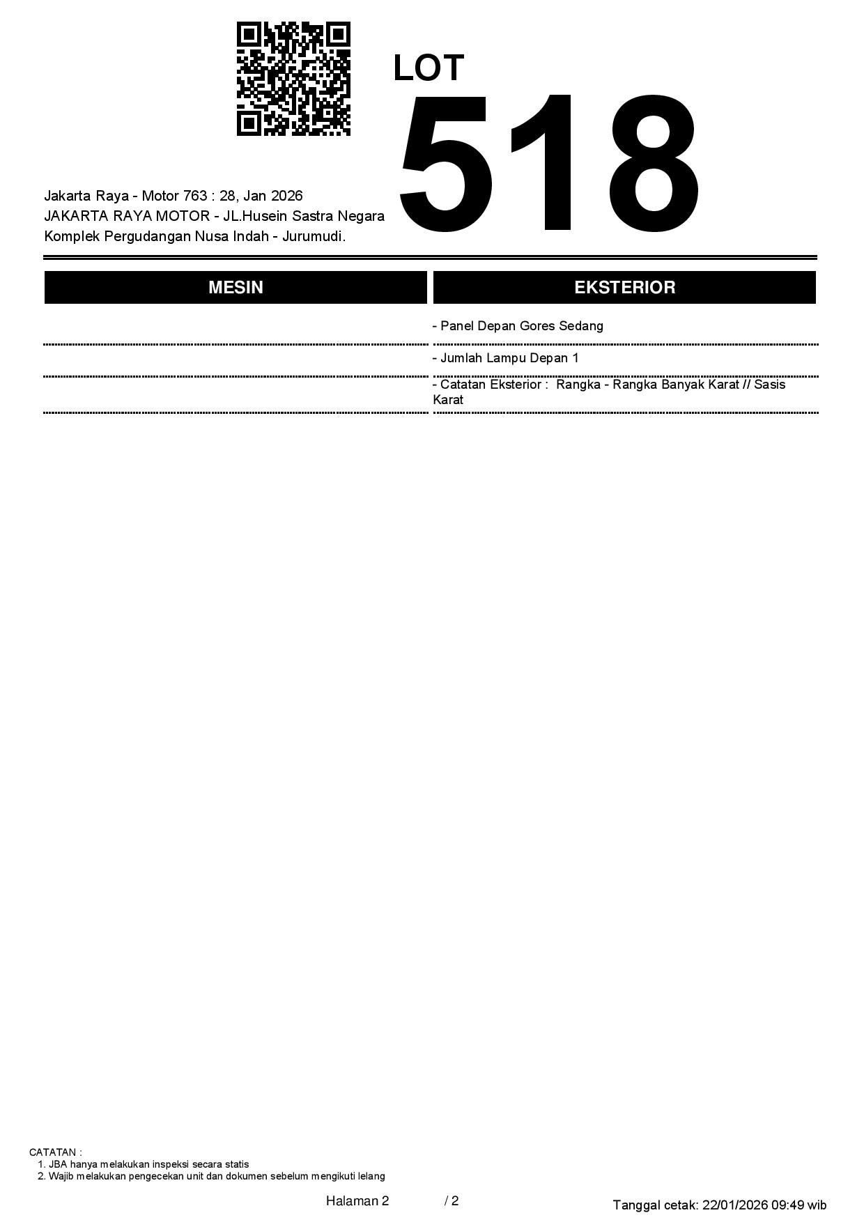 2. Peserta lelang wajib cek unit & dokumen