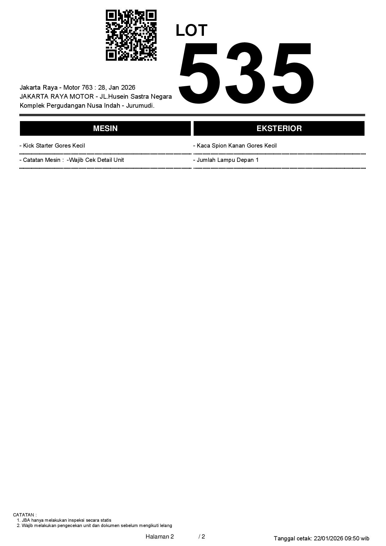 2. Peserta lelang wajib cek unit & dokumen