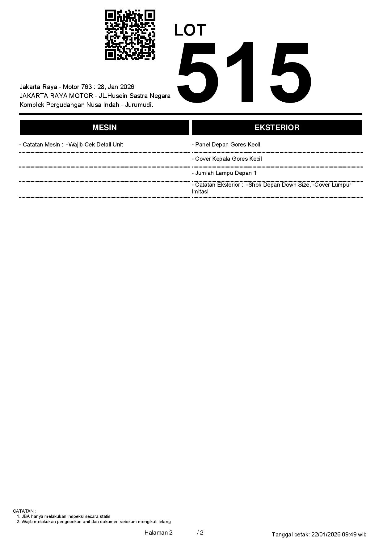 2. Peserta lelang wajib cek unit & dokumen