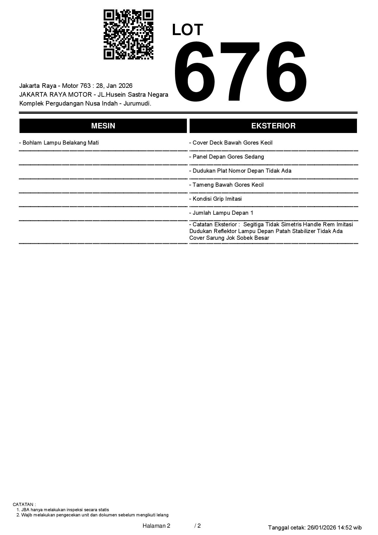 2. Peserta lelang wajib cek unit & dokumen