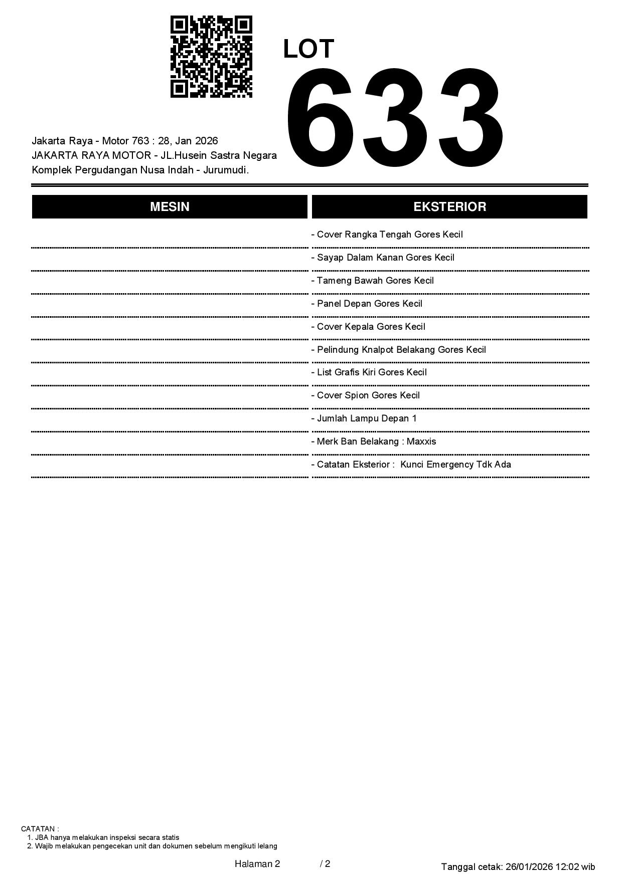 2. Peserta lelang wajib cek unit & dokumen
