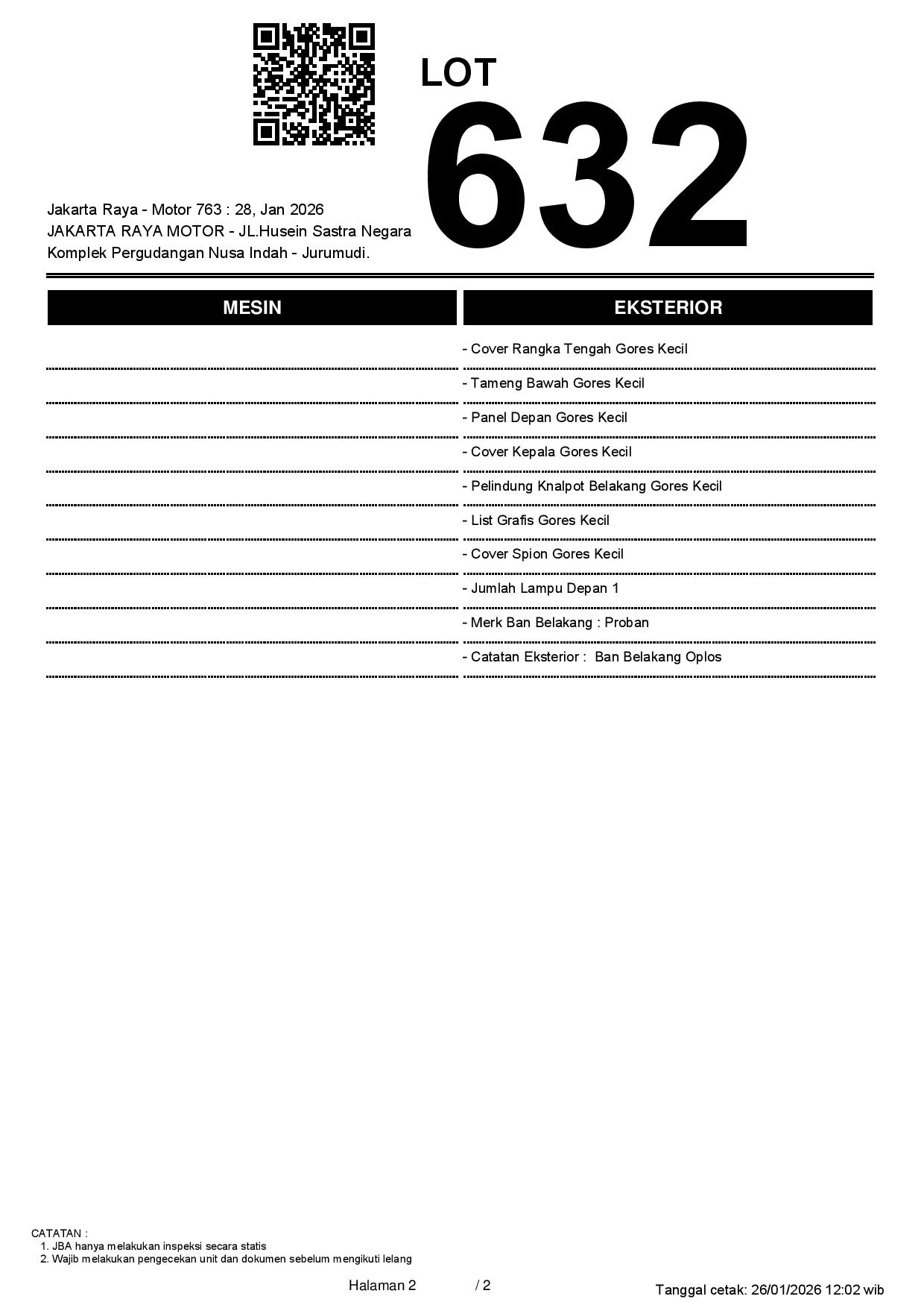 2. Peserta lelang wajib cek unit & dokumen
