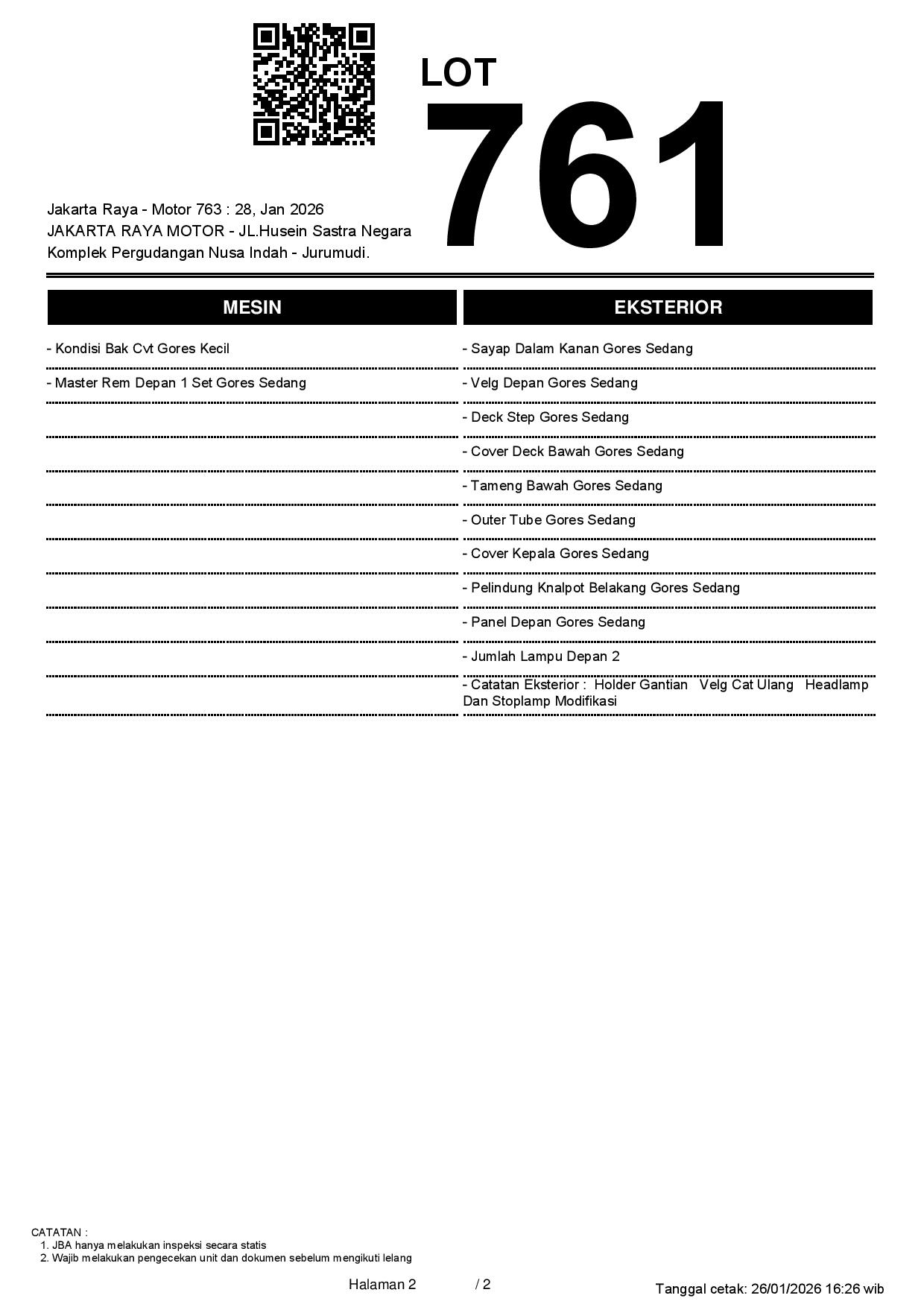 2. Peserta lelang wajib cek unit & dokumen