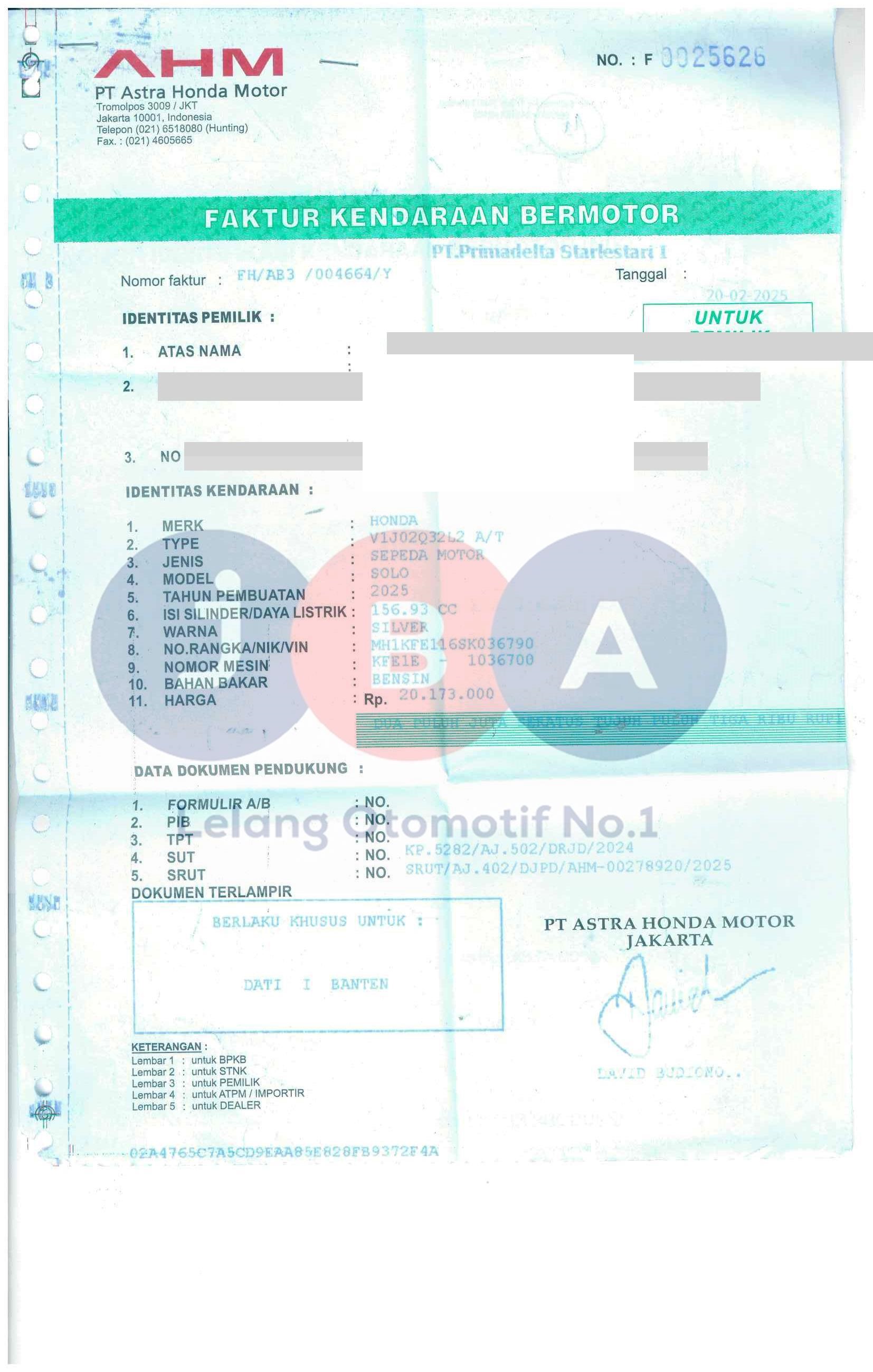 Nomor Rangka
