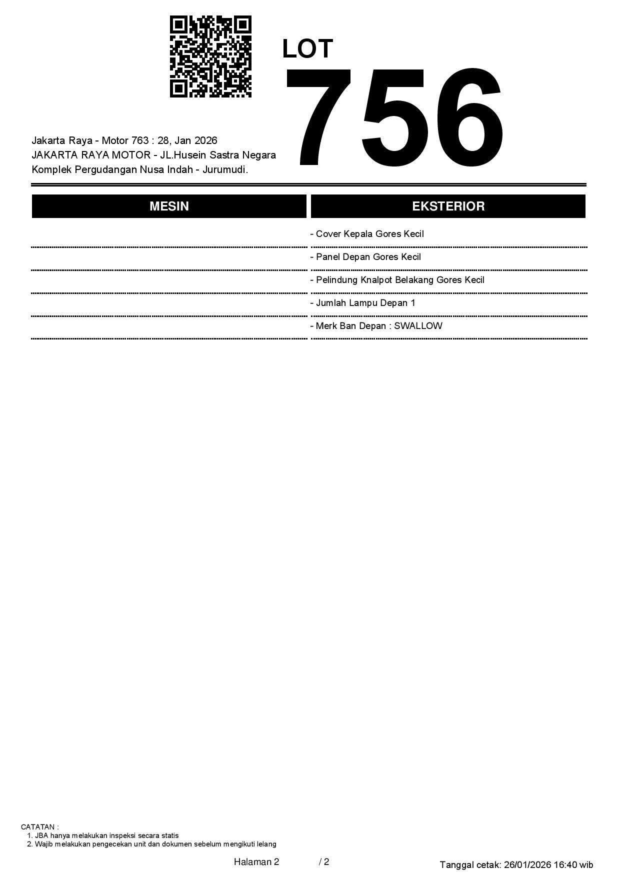 Tanggal Lelang: 28/01/2026 13:00 | WIB