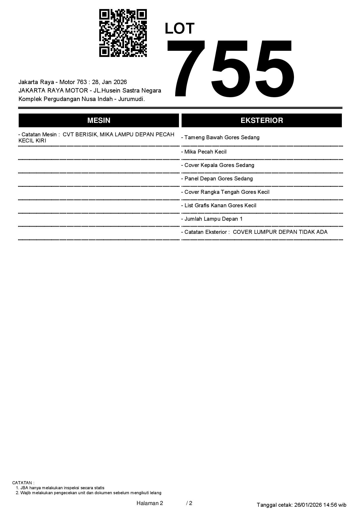 2. Peserta lelang wajib cek unit & dokumen