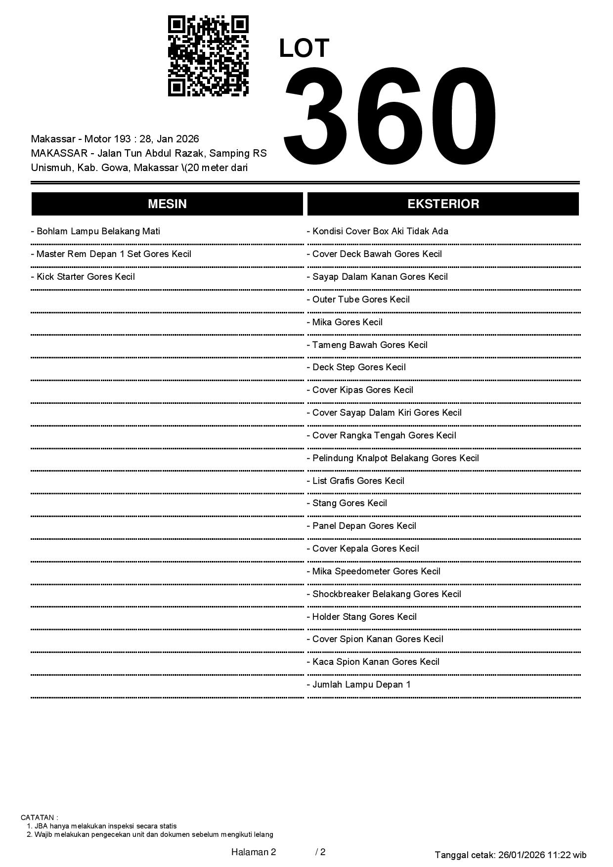 1. Peserta lelang wajib cek unit & dokumen