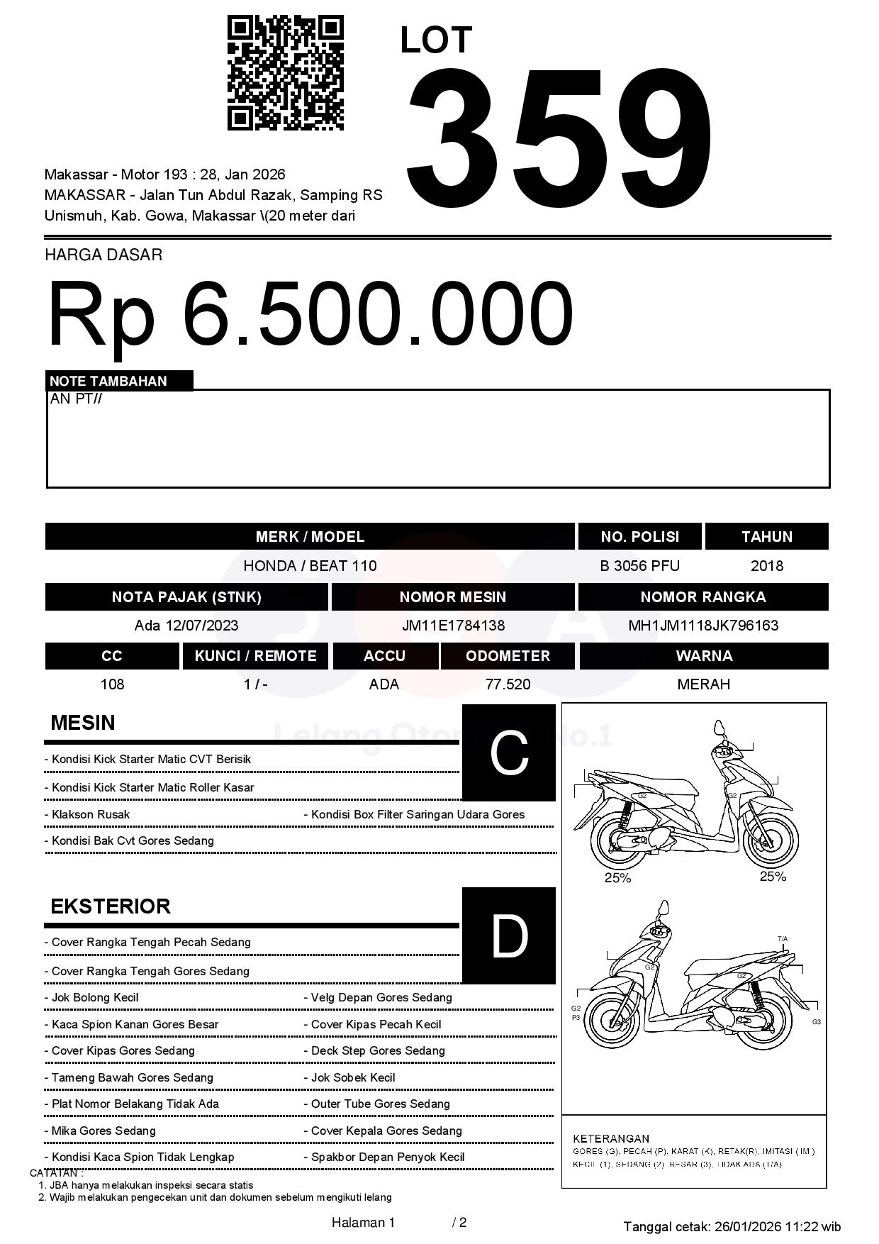 1. Peserta lelang wajib cek unit & dokumen