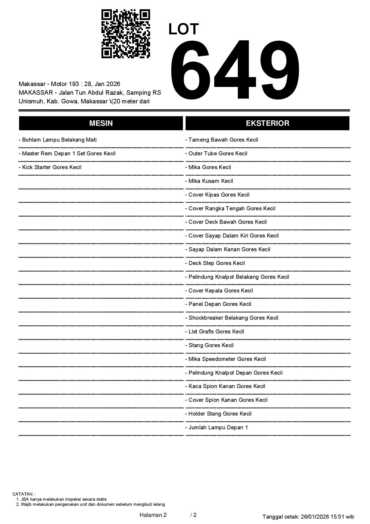 1. Peserta lelang wajib cek unit & dokumen