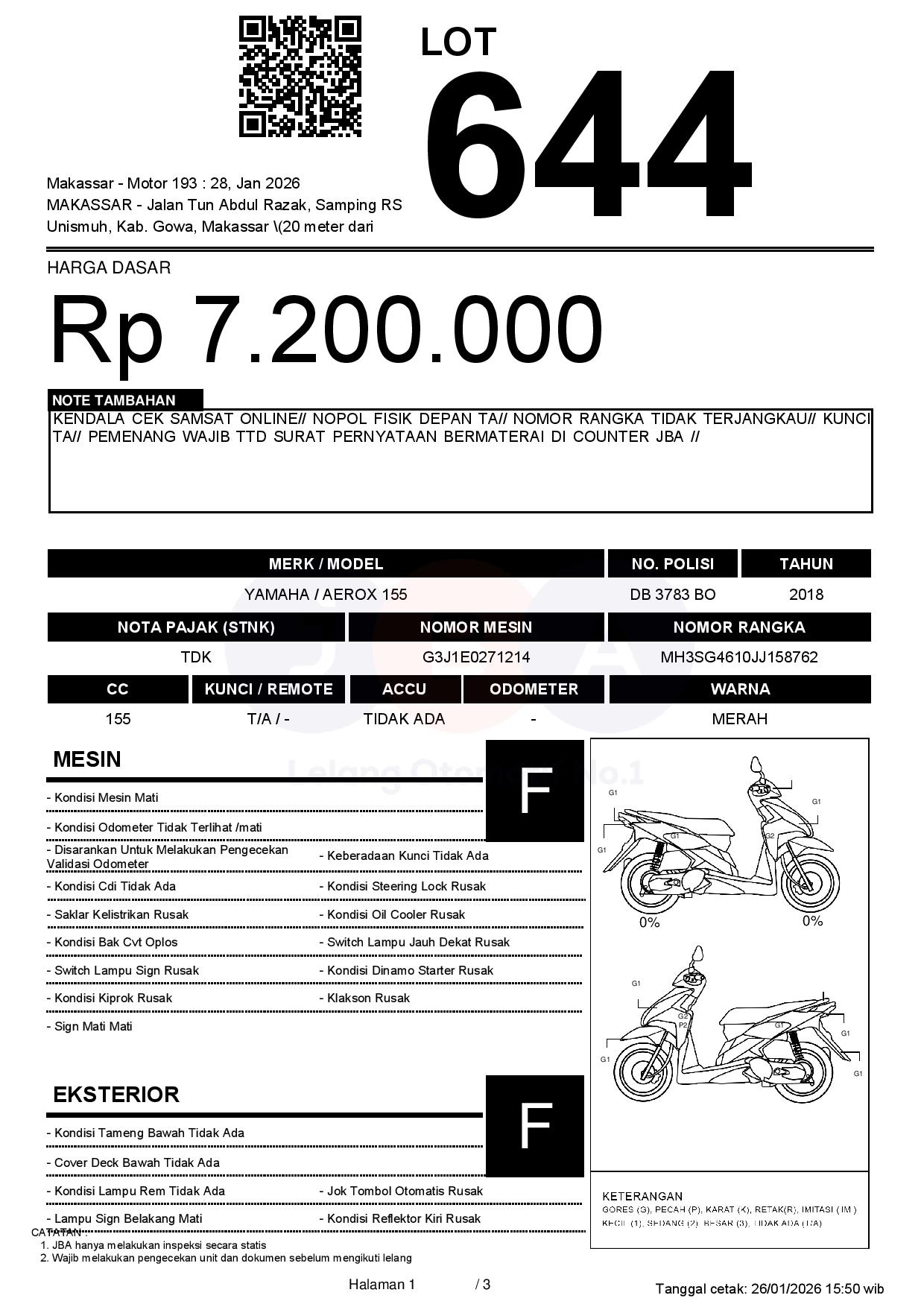 KENDALA CEK SAMSAT ONLINE// NOPOL FISIK DEPAN TA// NOMOR RANGKA TIDAK TERJANGKAU// KUNCI TA// PEMENANG WAJIB TTD SURAT PERNYATAAN BERMATERAI DI COUNTER JBA //